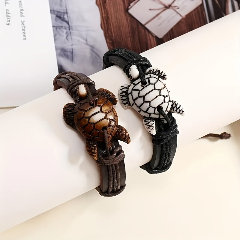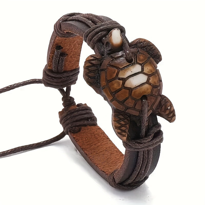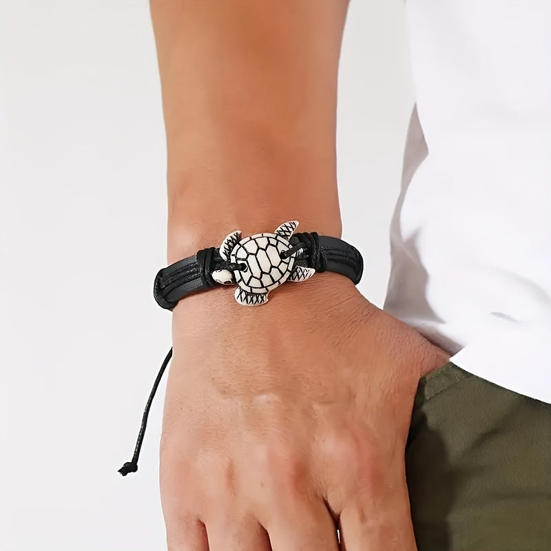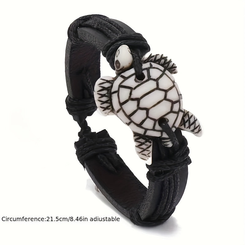 Add a touch of retro charm to your style with this faux leather braided bracelet featuring a sleek turtle decoration. It's a non-magnetic wrist accessory that exudes vintage appeal.