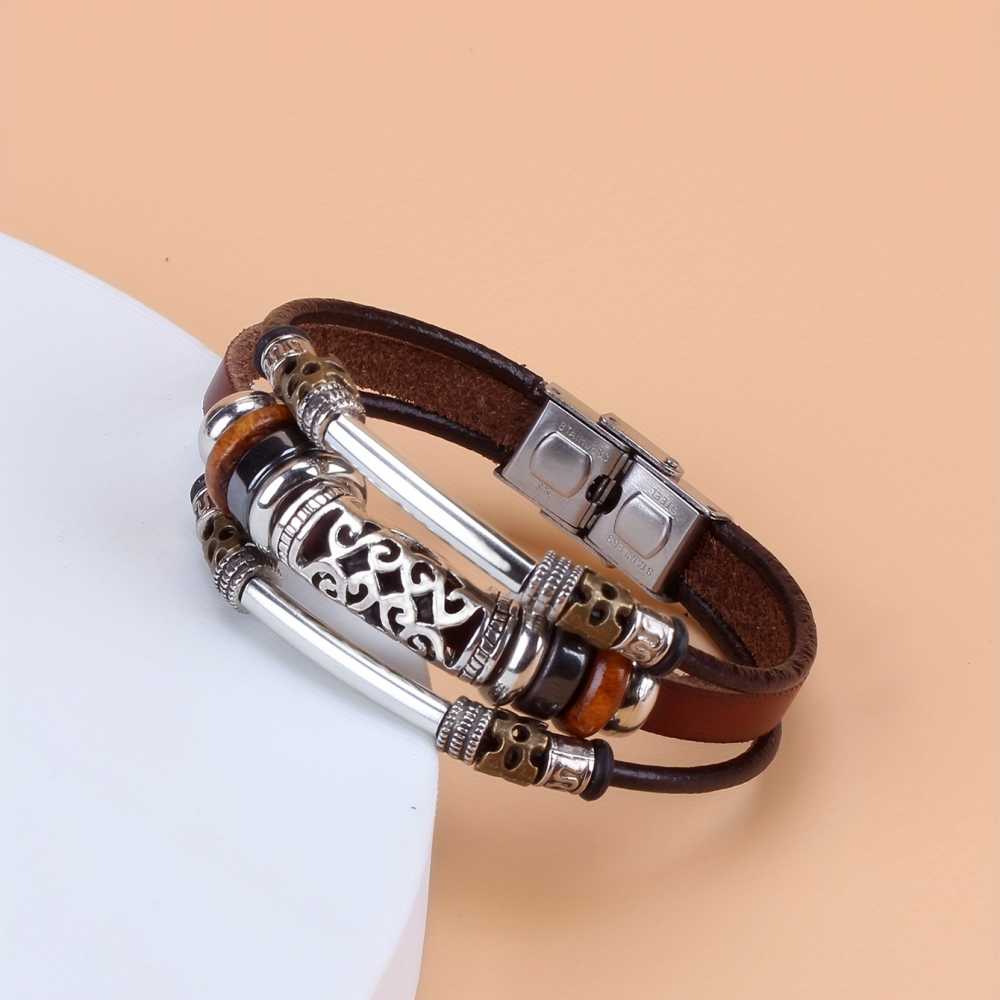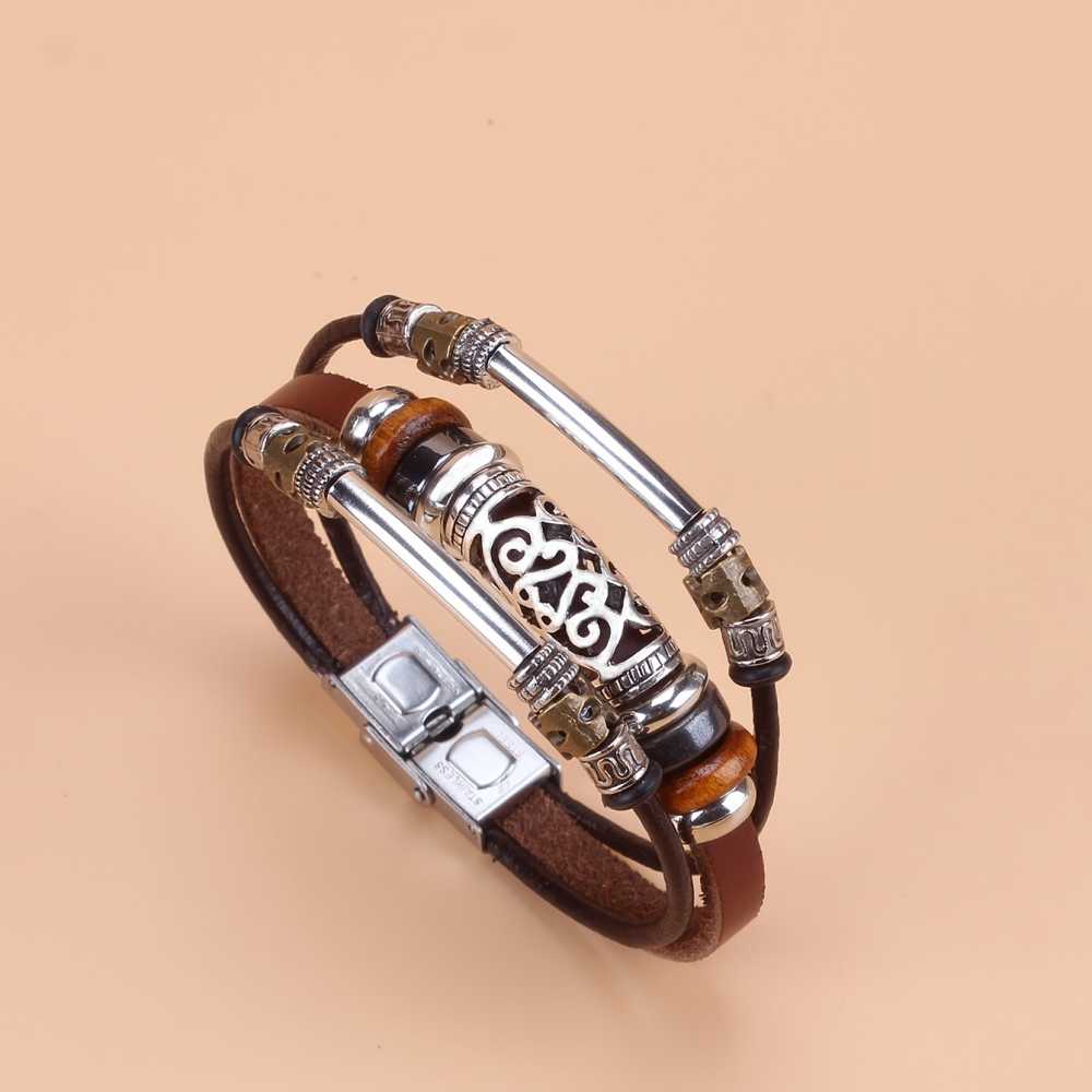 The Men's Fashion Leather Buckle Stainless Steel Bracelet combines rugged durability with sleek style. Featuring a high quality stainless steel buckle, this bracelet is designed with genuine leather, offering both a sophisticated and masculine aesthetic. The adjustable buckle ensures a comfortable fit for any wrist size, while the stainless steel accents provide a modern, polished touch. Perfect for casual and formal wear, this bracelet adds a stylish edge to any outfit, making it a versatile accessory for the fashion forward man. Its blend of metal and leather materials exudes a refined, yet bold appeal.