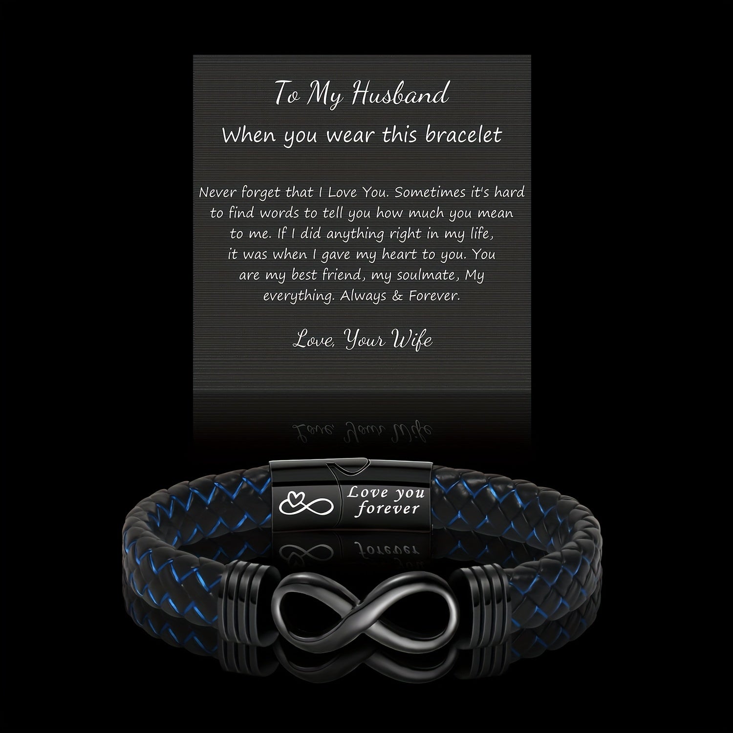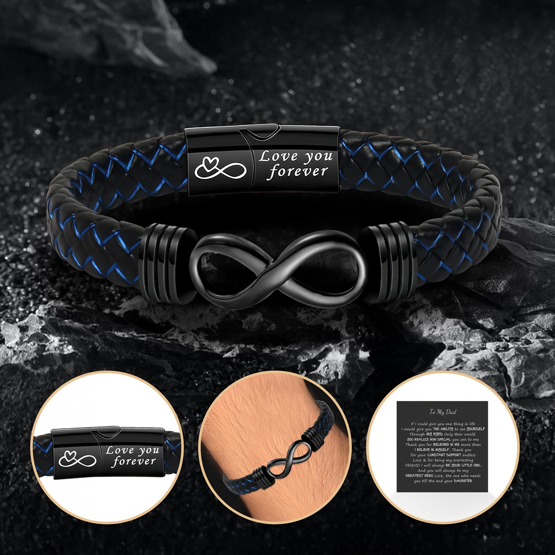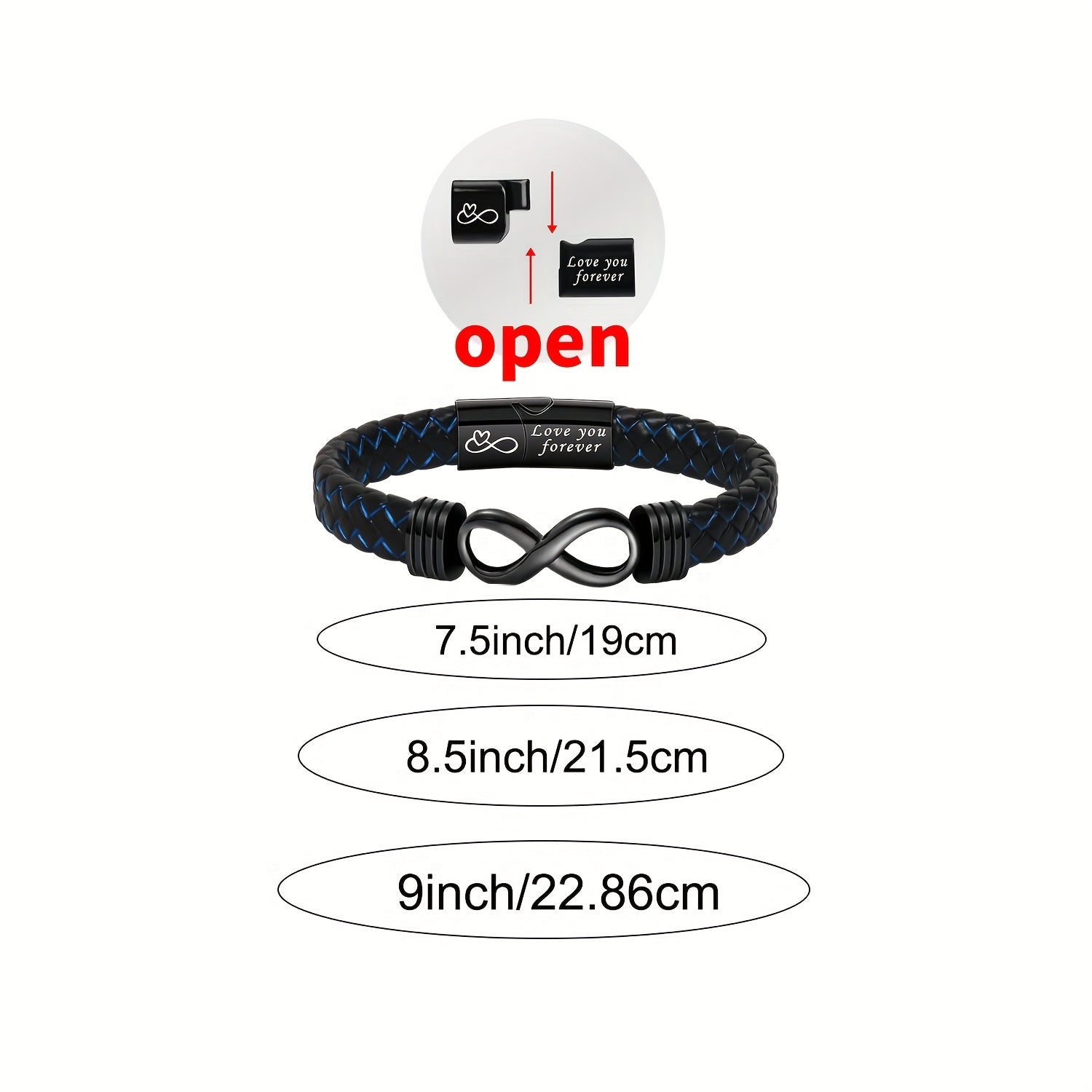 This stylish faux leather bracelet makes a perfect gift for men. Ideal for fathers, husbands, boyfriends, sons, or any special man in your life. Great for birthdays, graduations, or just as a daily accessory.