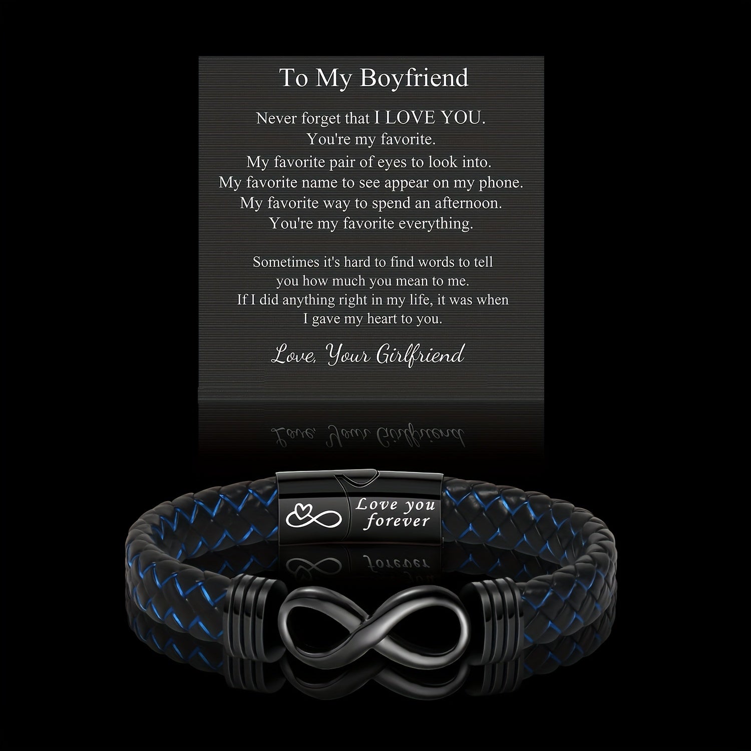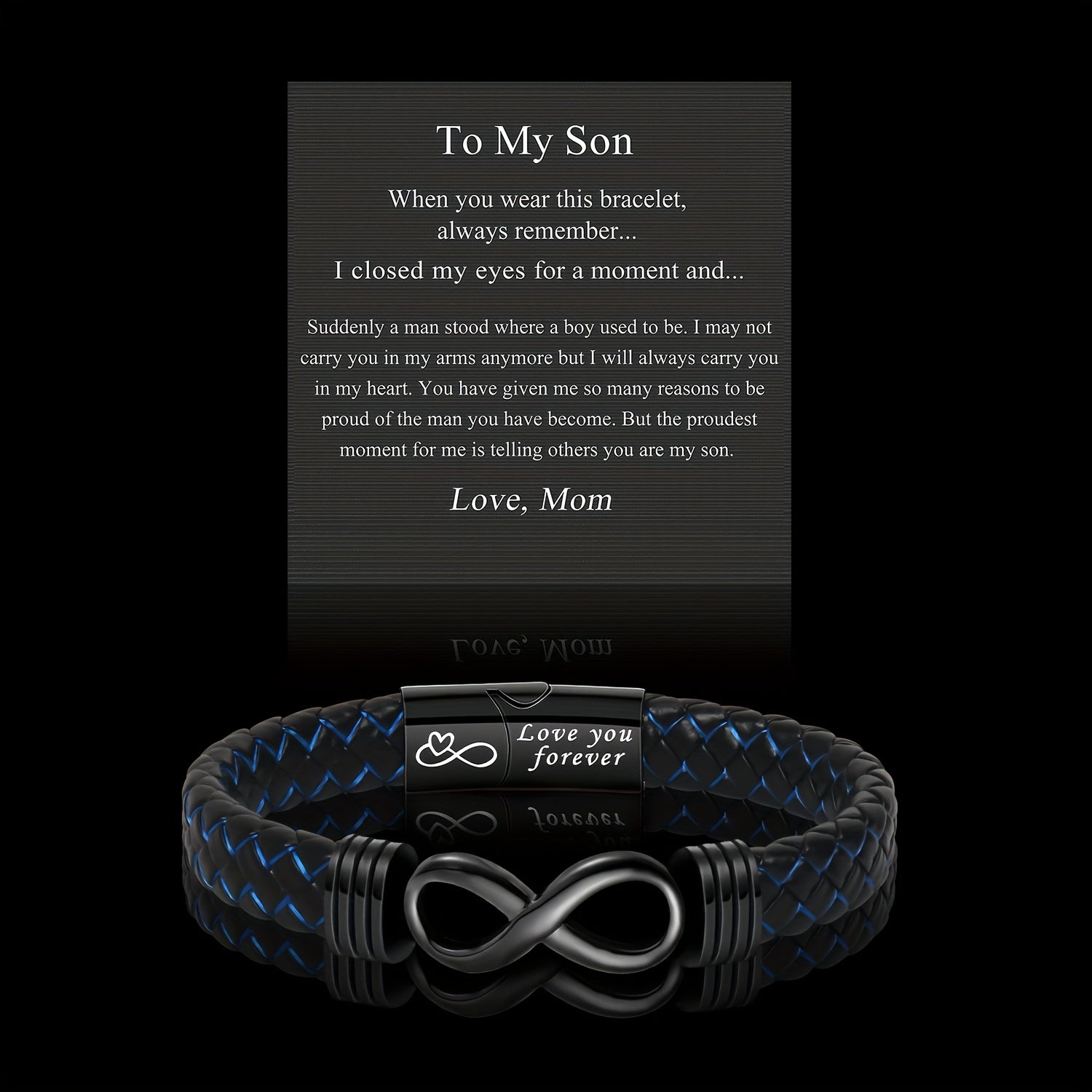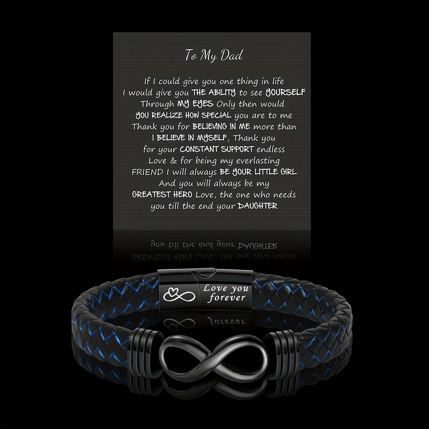 This stylish faux leather bracelet makes a perfect gift for men. Ideal for fathers, husbands, boyfriends, sons, or any special man in your life. Great for birthdays, graduations, or just as a daily accessory.