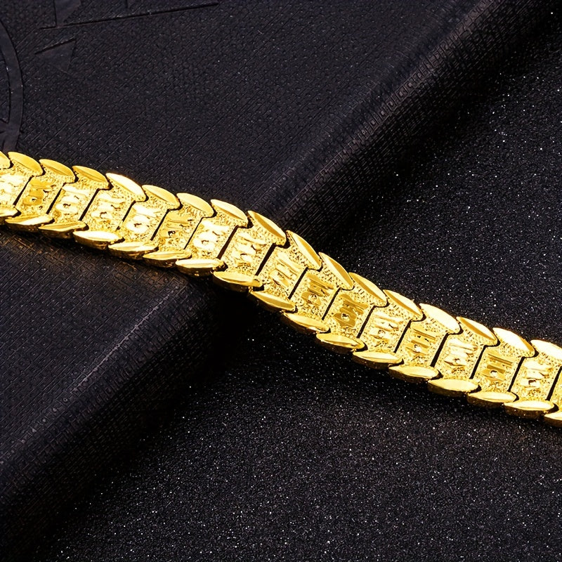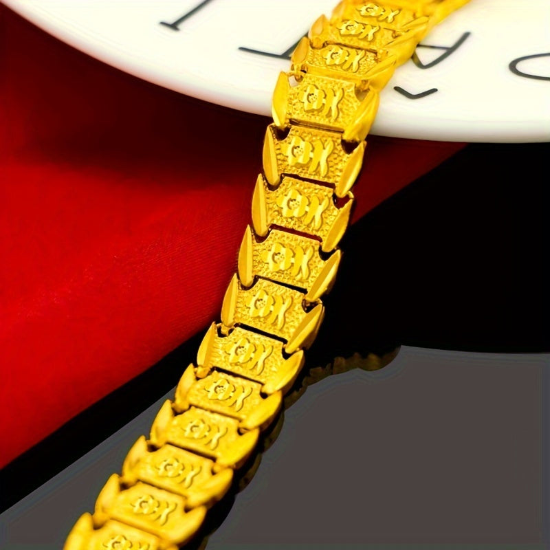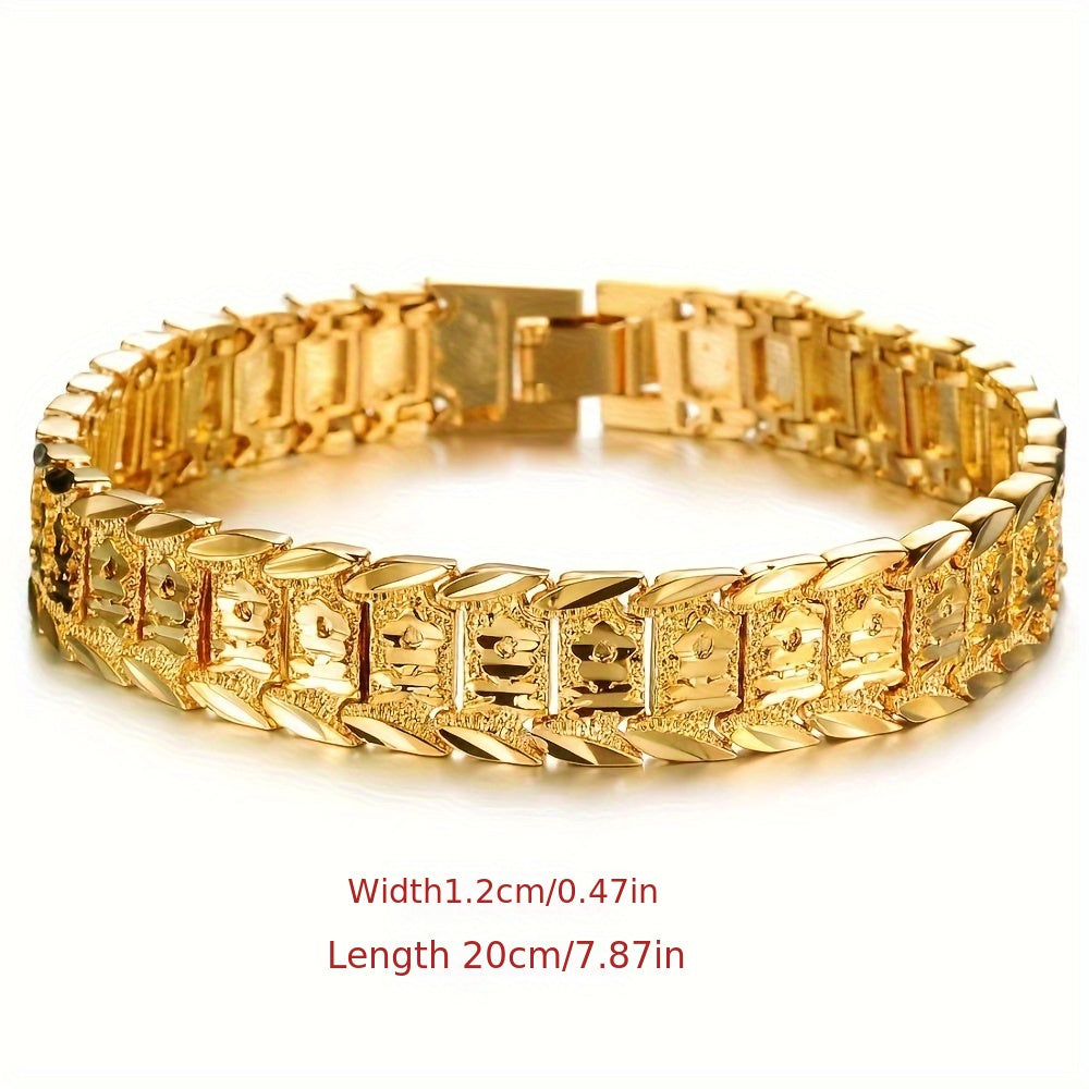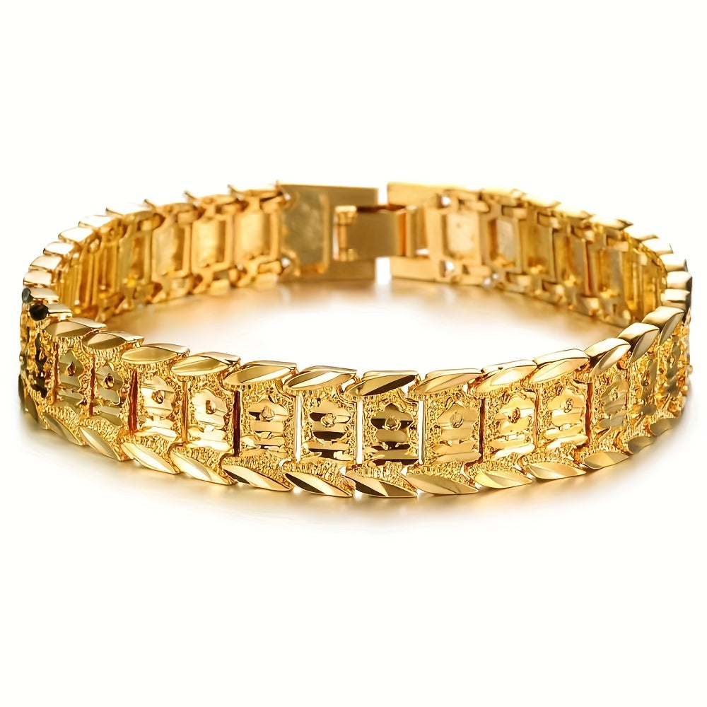This intricate floral bracelet is crafted from durable brass with 24K gold plating. Perfect for parties and formal occasions, it makes a great gift for your dad, boyfriend, or any special man in your life.