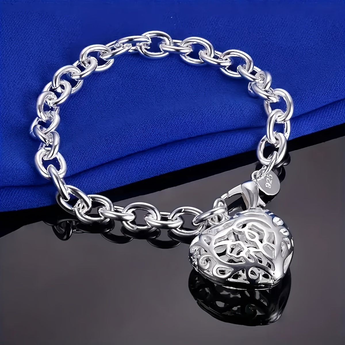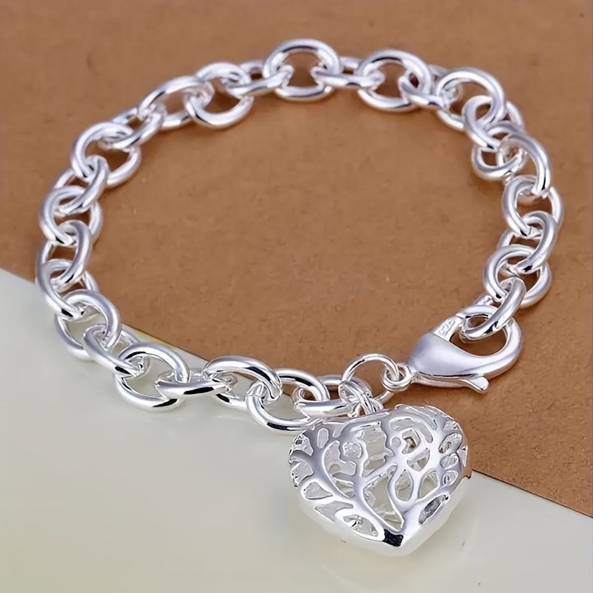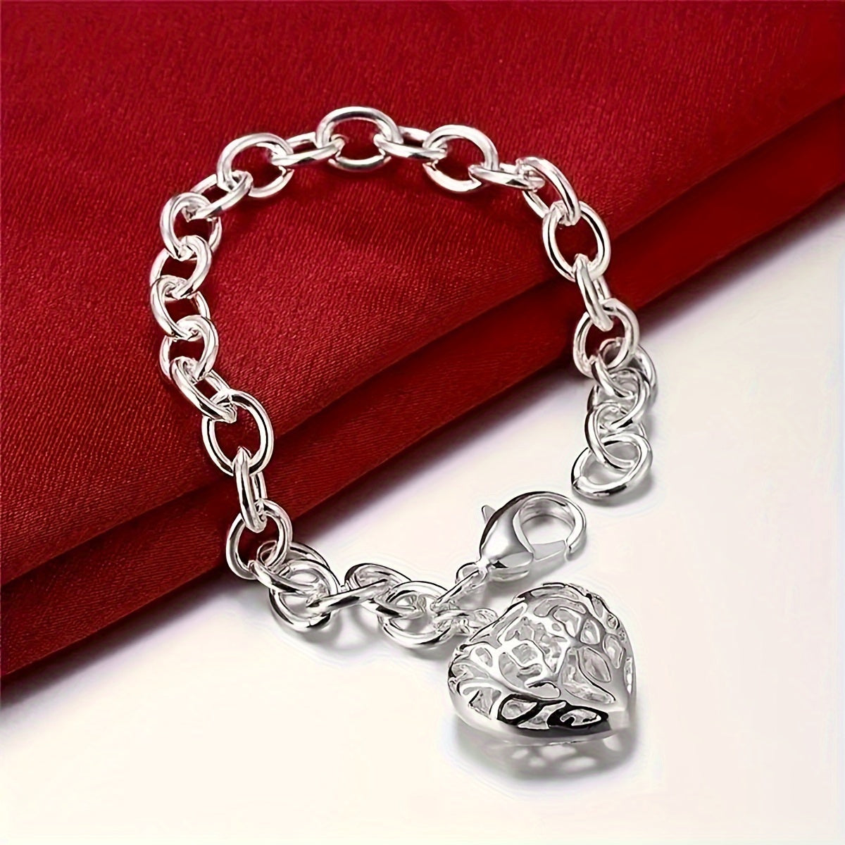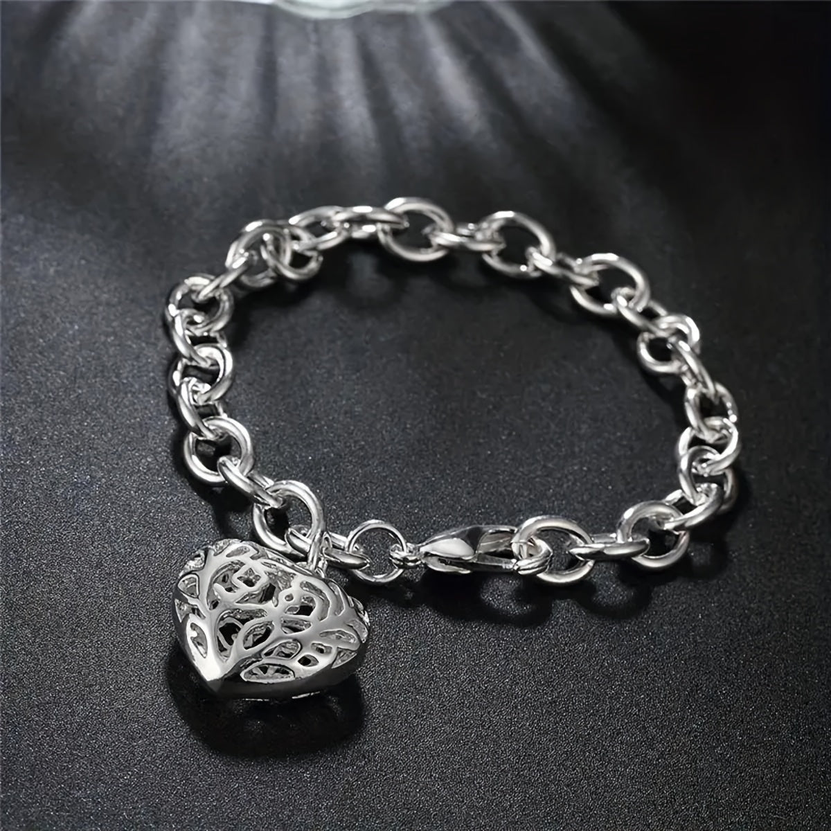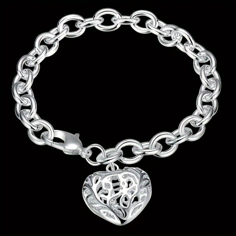 This stylish men's bracelet features a silvery tone heart pendant. Perfect for adding a touch of elegance to any outfit.