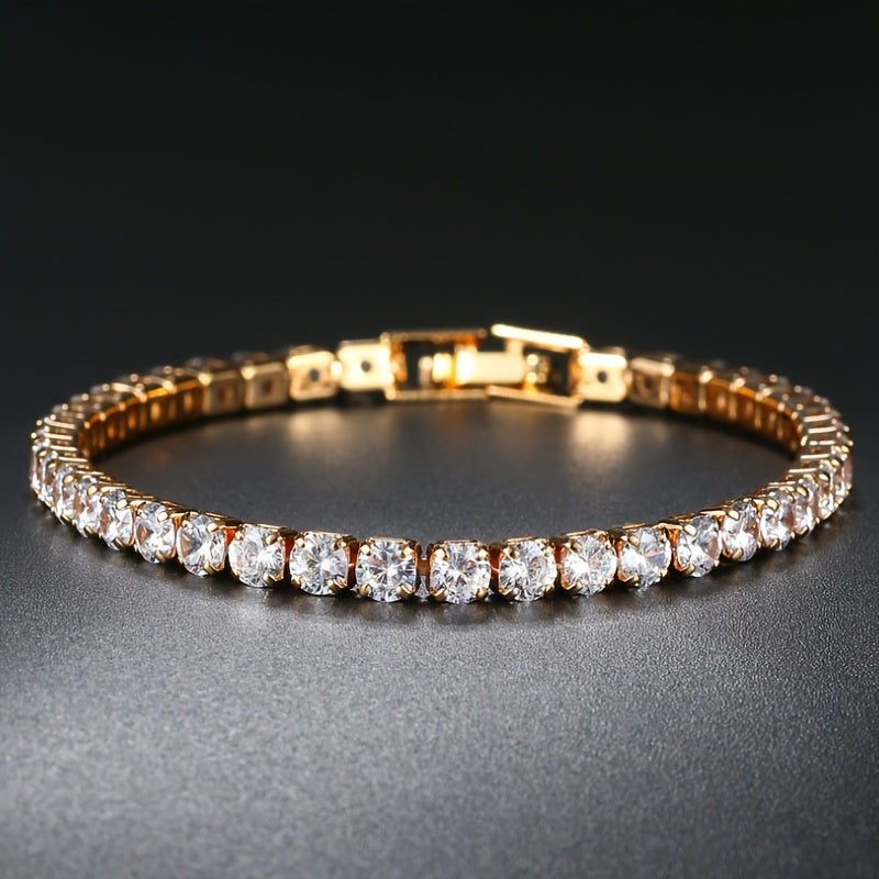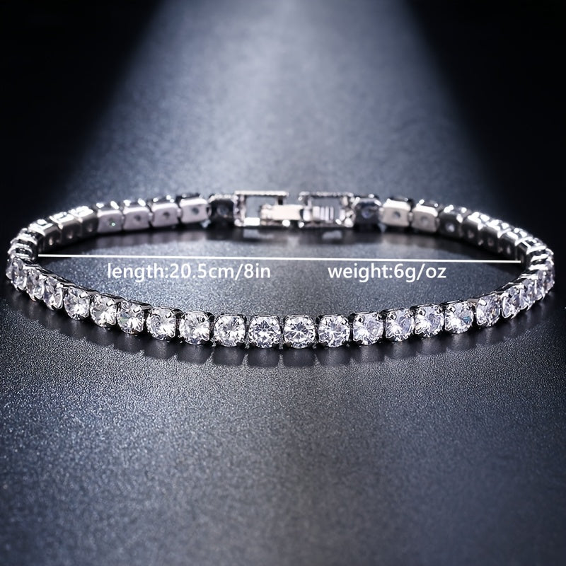 This stunning tennis bracelet for men features sparkling 5A zirconia stones, available in silver plated, golden, and rose golden options. Includes a jewelry bag, making it a perfect gift for birthdays and anniversaries.