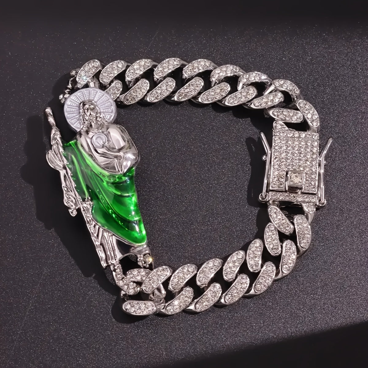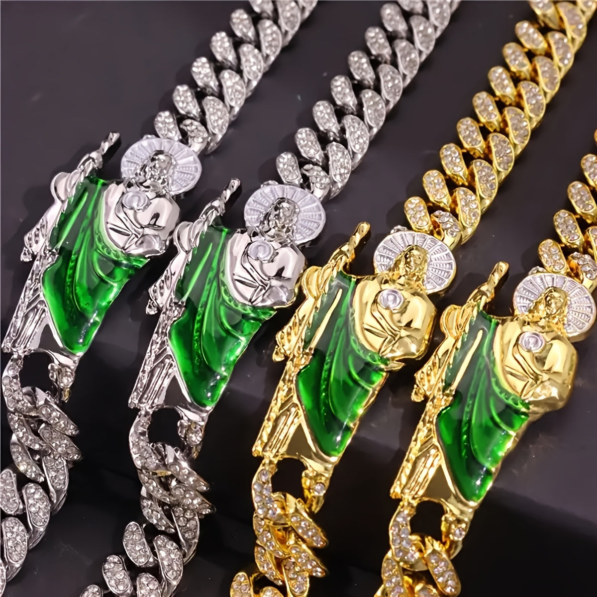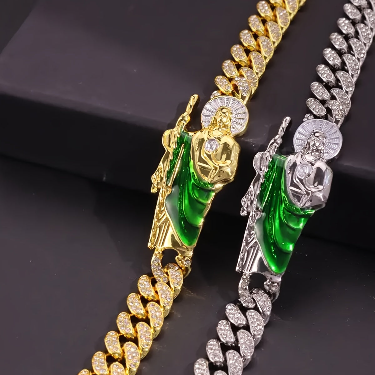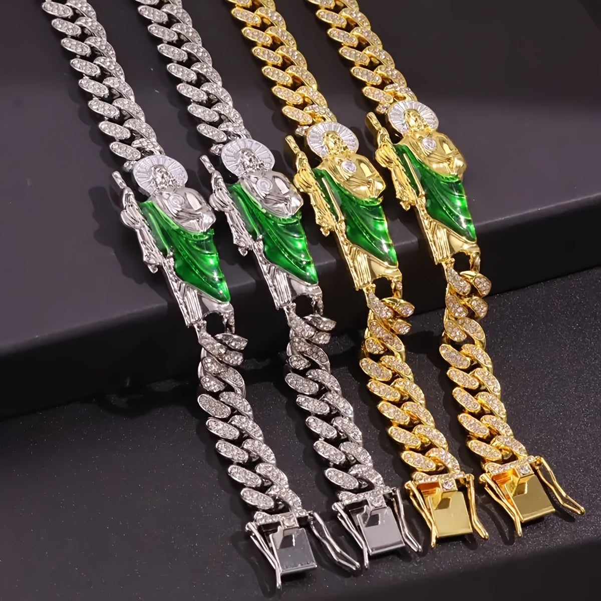 This stylish hip hop pendant chain bracelet features a Jesus pendant with rhinestones. Made of high-quality zinc alloy, it is a perfect accessory for a punk look.