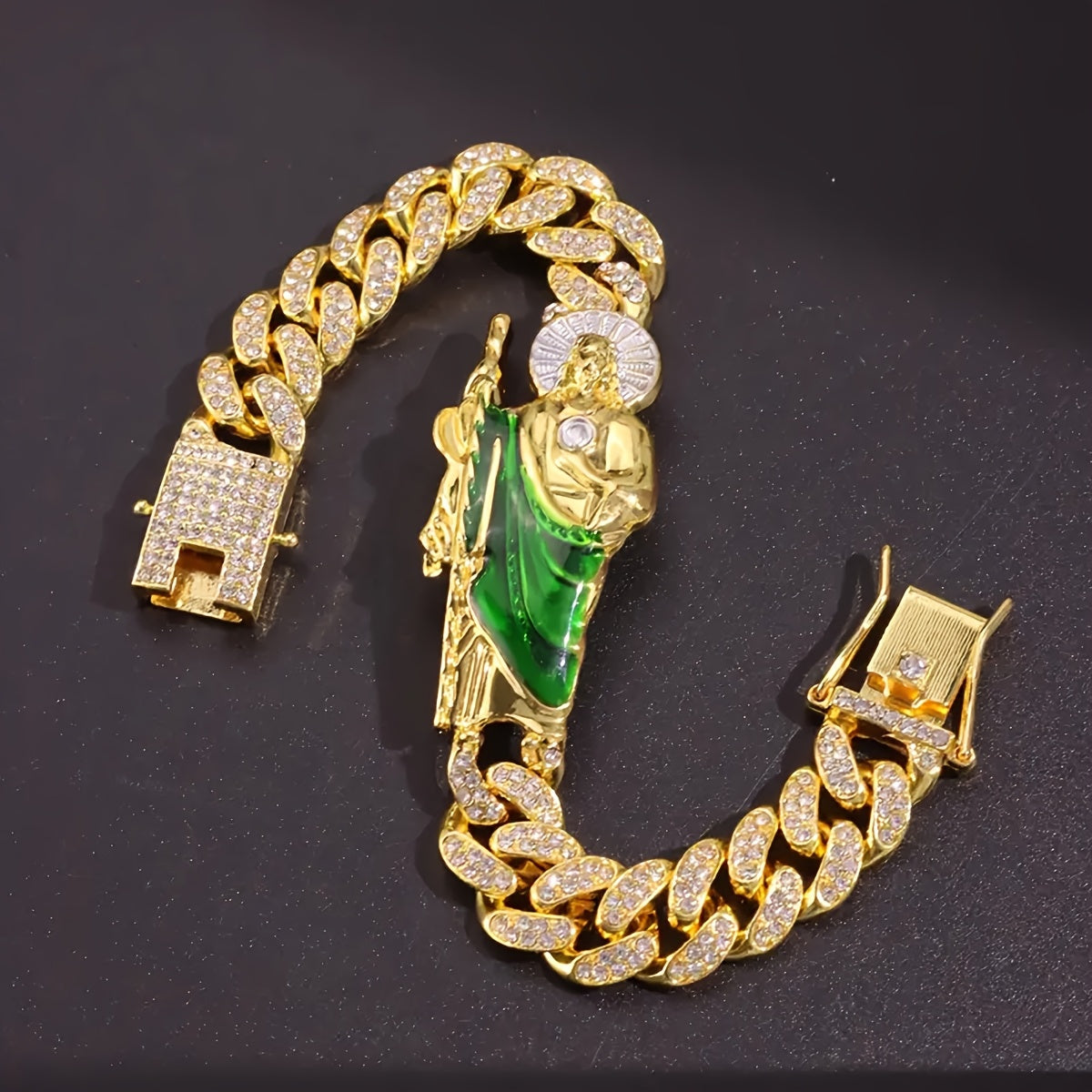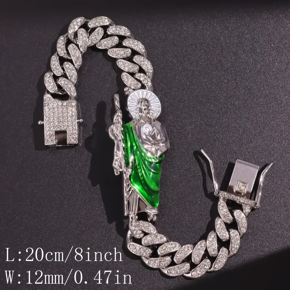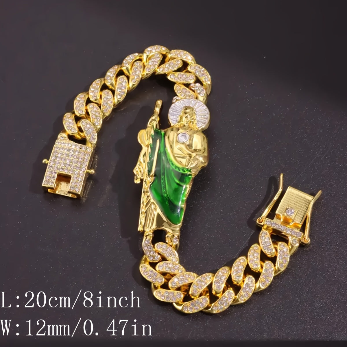 Men's Hip Hop Rhinestones Jesus Pendant Chain Bracelet Zinc Alloy Punk Charm