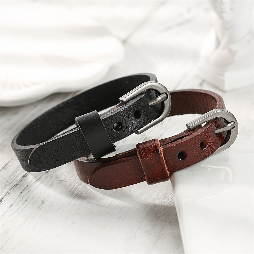 Elevate your style with this belt buckle leather bracelet, perfect for daily wear and casual outfits.