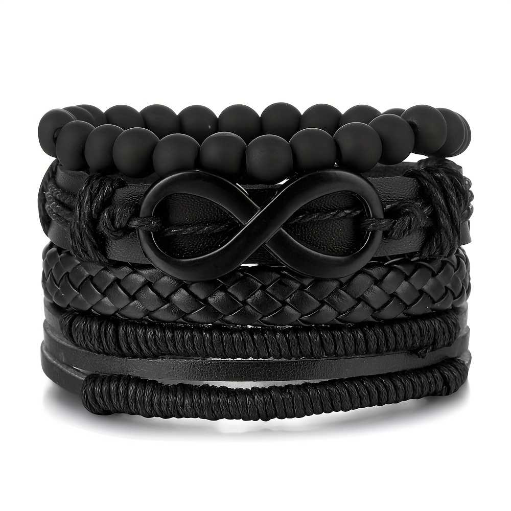 Men's Multi Layer Black Beaded Infinity Braided Leather Bracelet