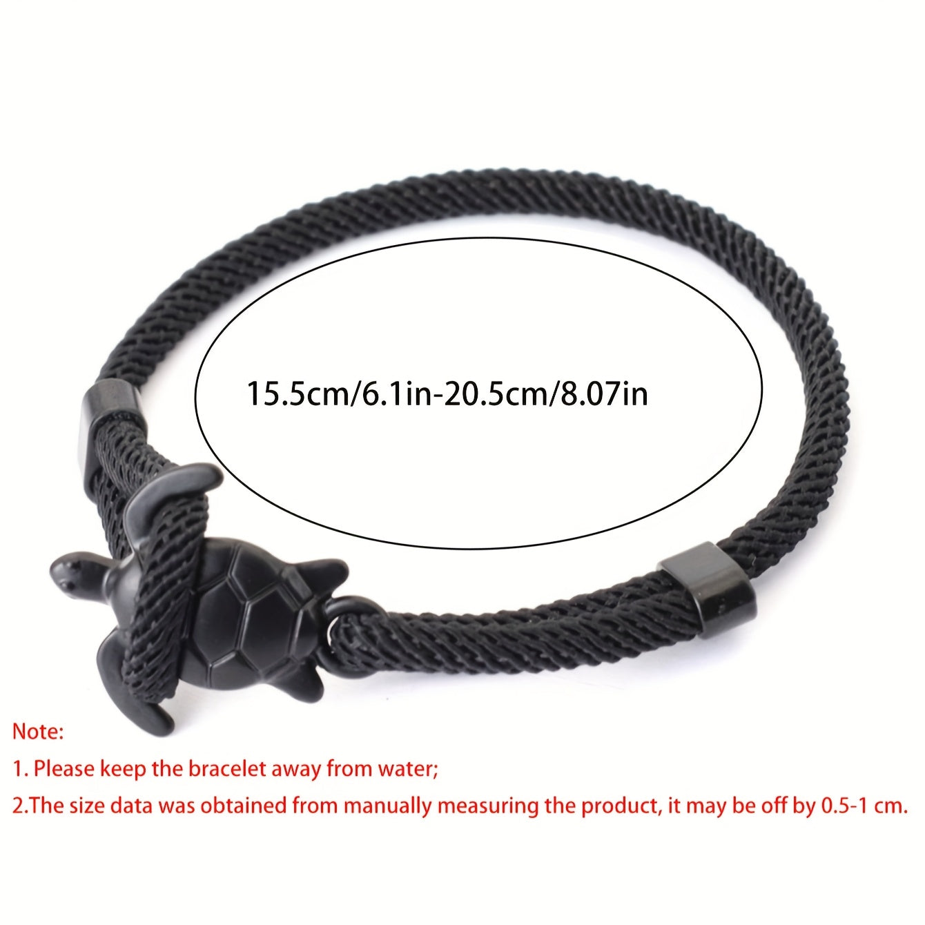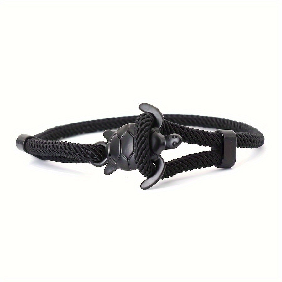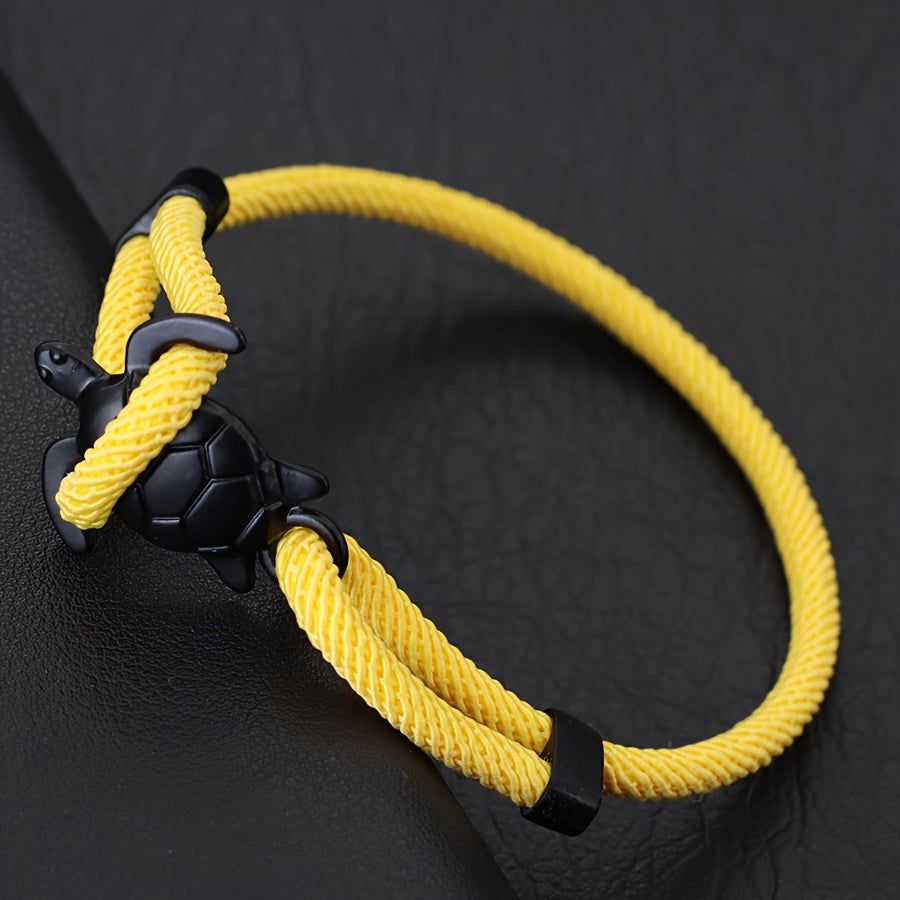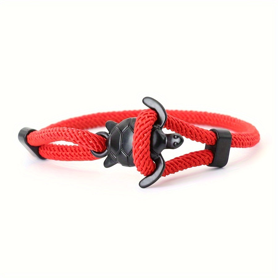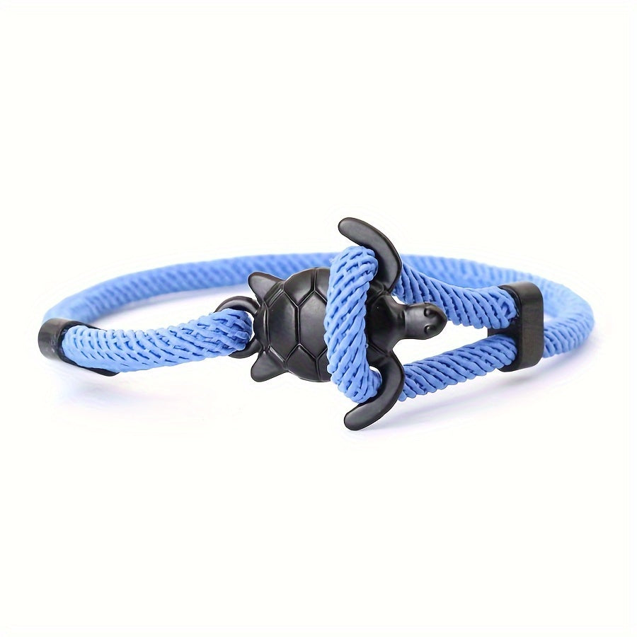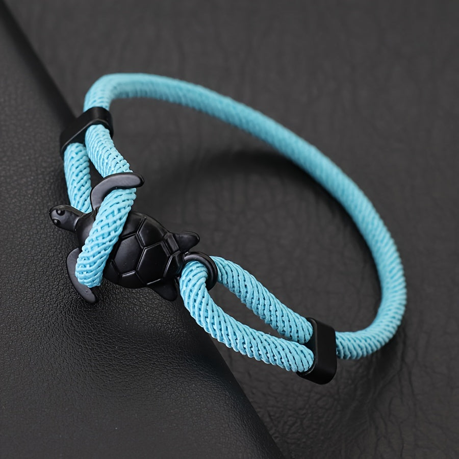 This adjustable rope bracelet is a stylish unisex accessory that adds a touch of charm to your outfit. The turtle design adds a unique and trendy element to your look.