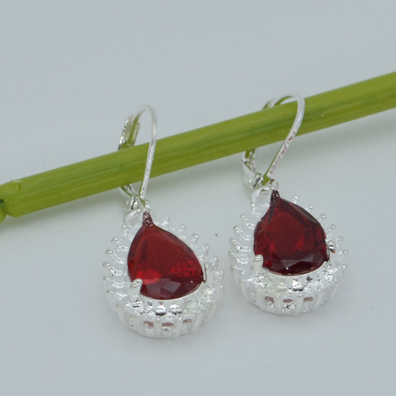 Add a touch of style with these red zircon encrusted pendant earrings that are perfect for casual wear. Ideal for gifting.