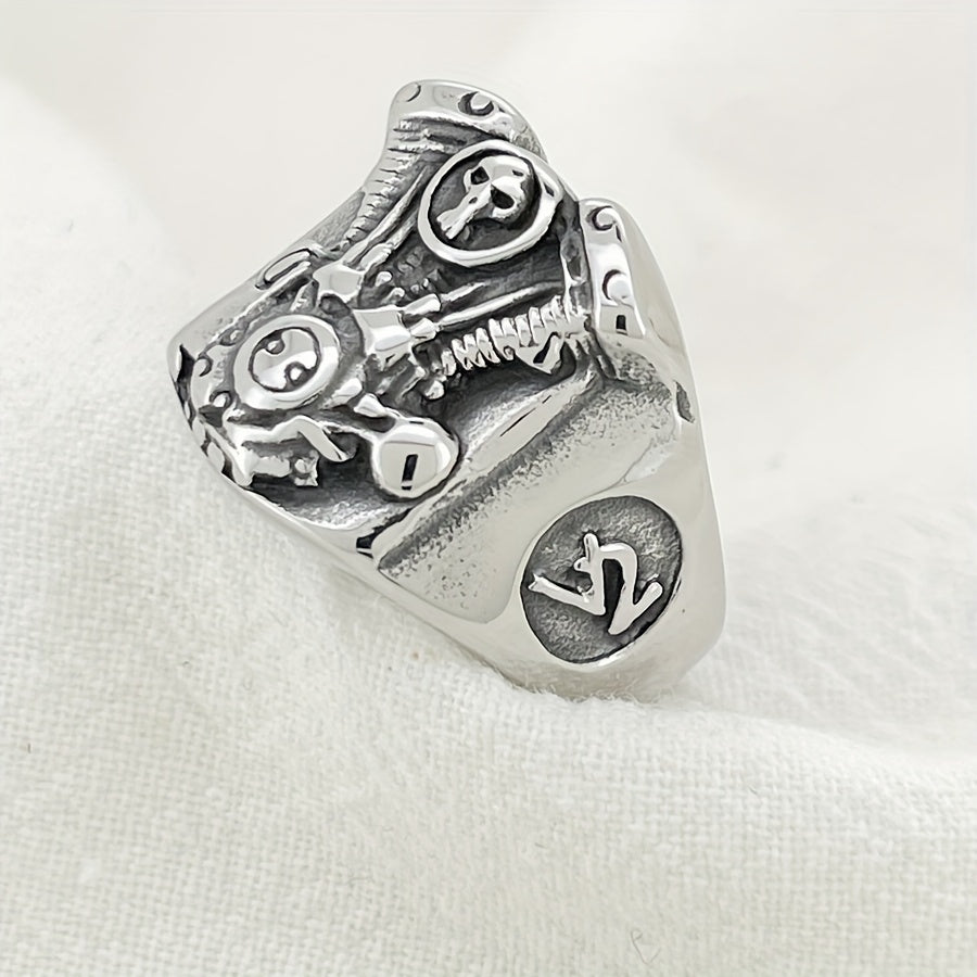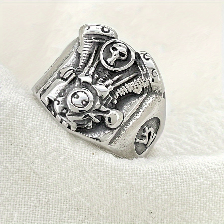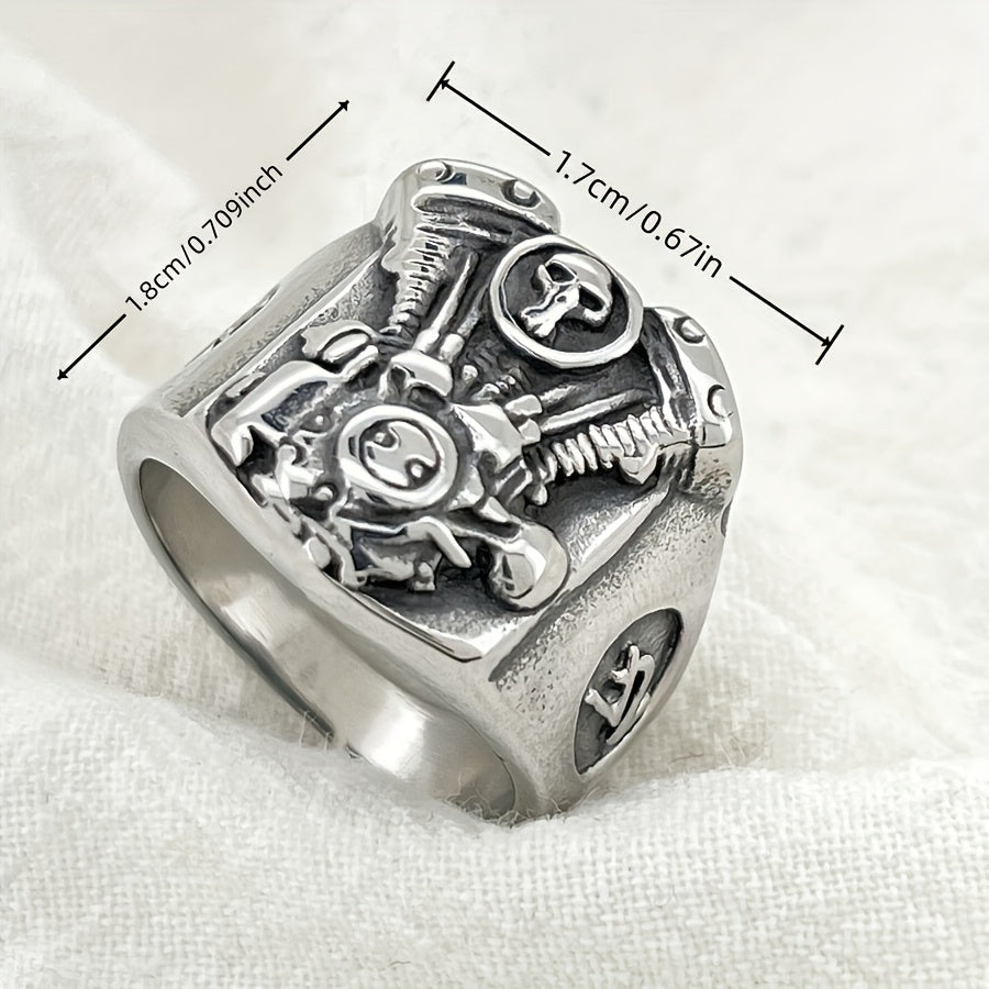 Add a touch of vintage charm to your style with this stainless steel ring featuring a motorcycle engine design.