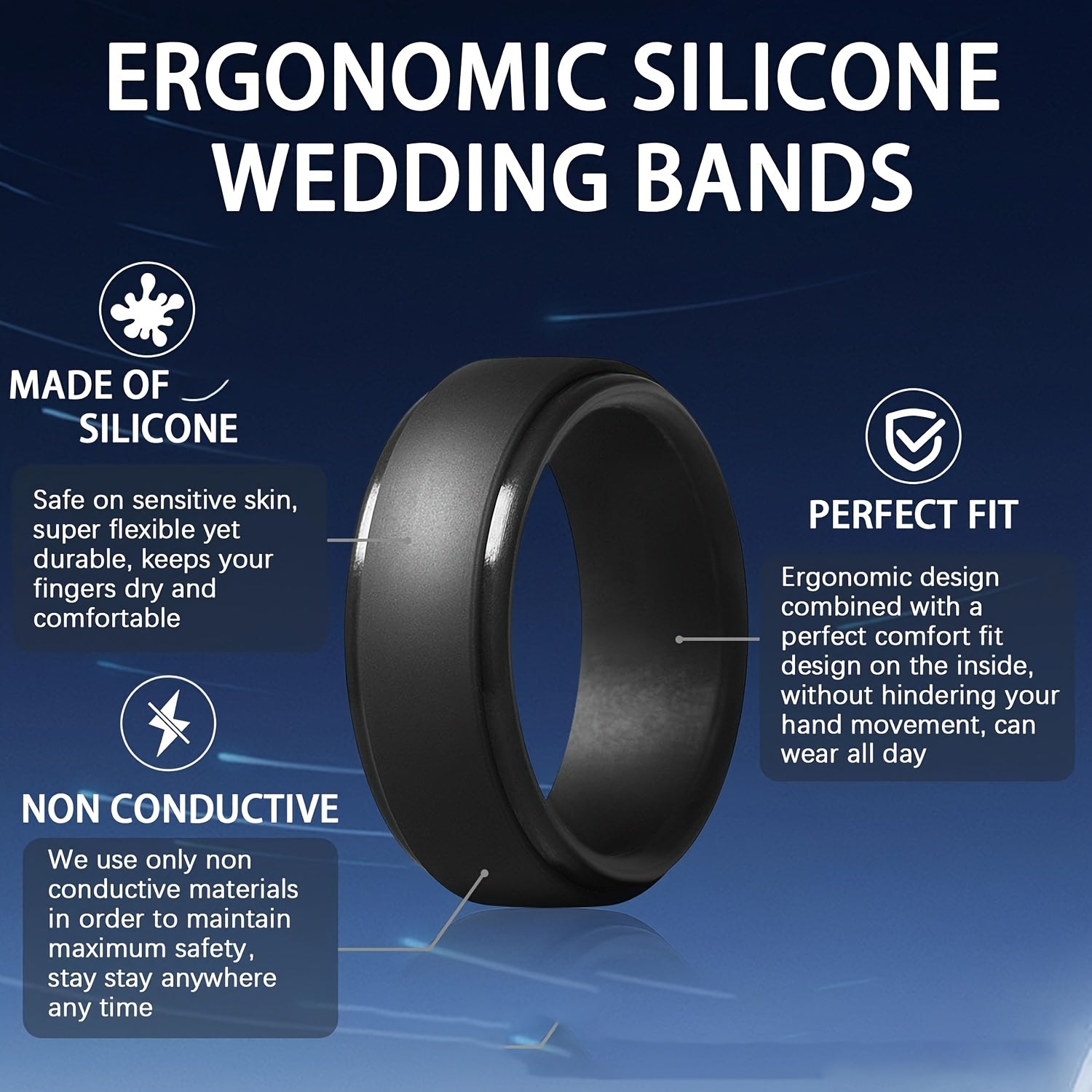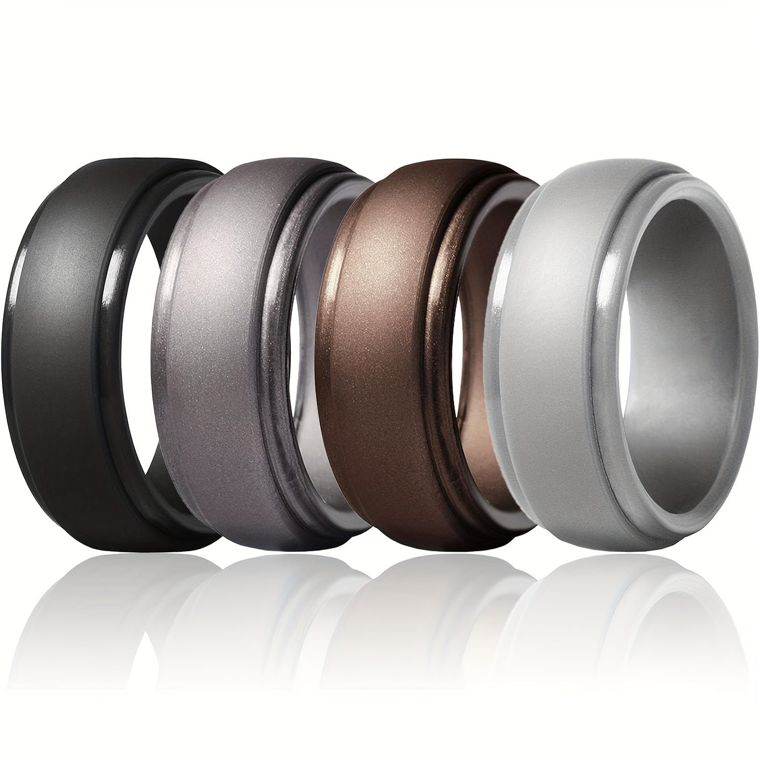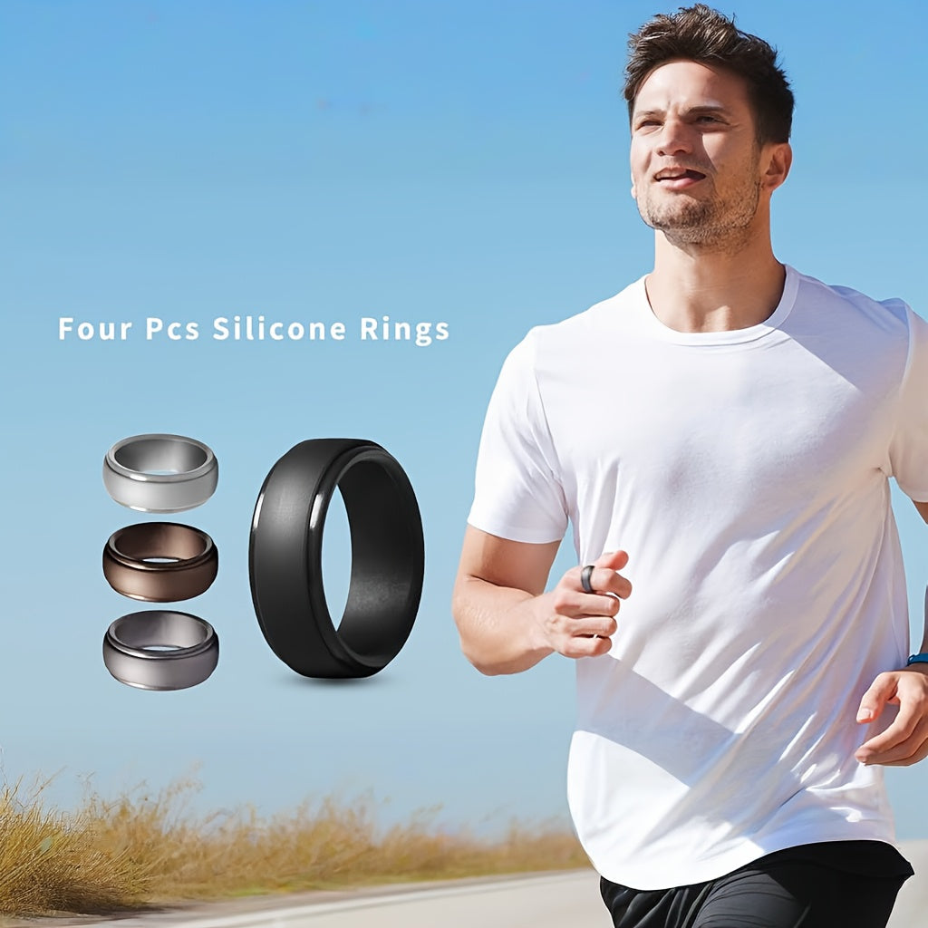 Stay active with this set of 4 silicone wedding rings, perfect for sports, exercise, gym, and outdoor activities. These hypoallergenic rings are waterproof and sweat-resistant for maximum comfort.