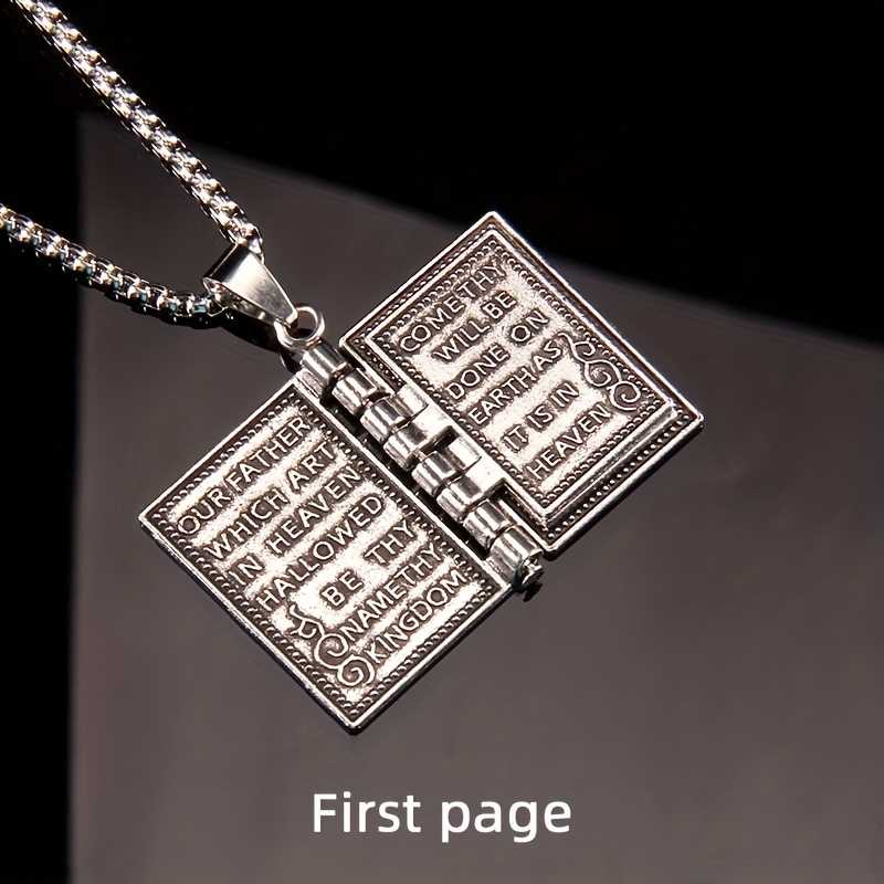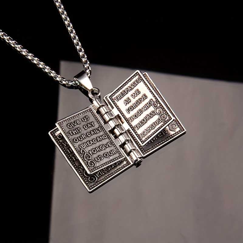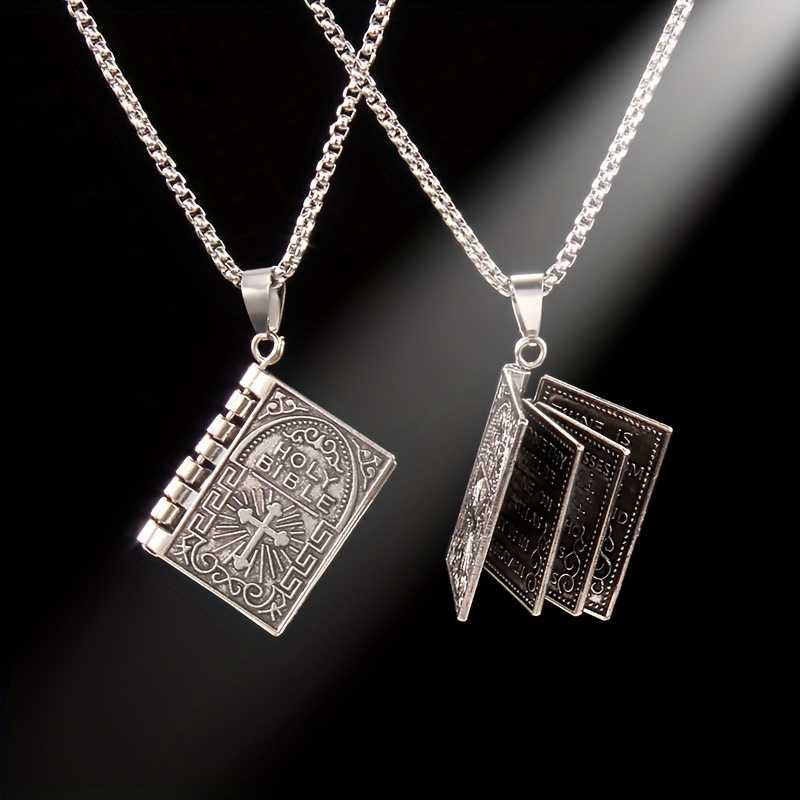Men's Silver Plated Bible Book Easter Cross Pendant with Chain