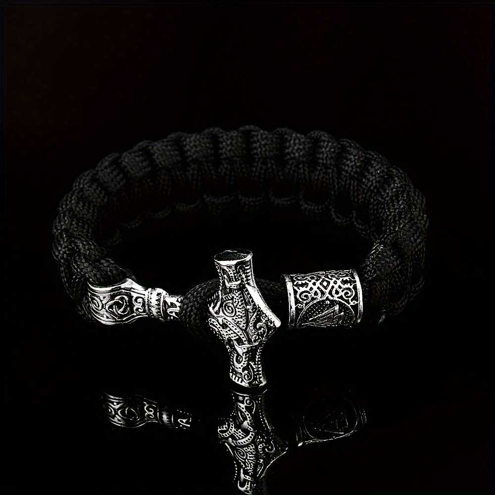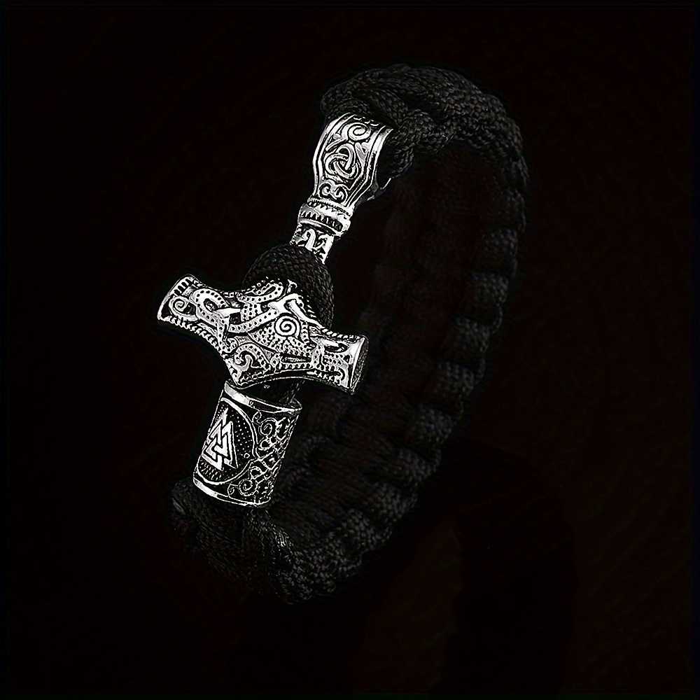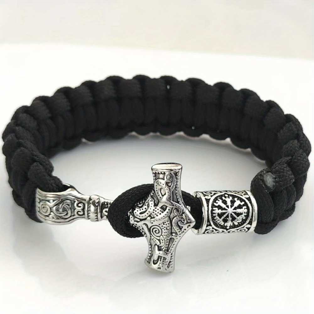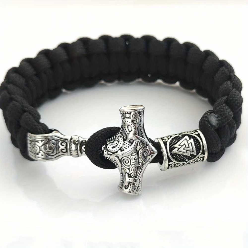 Men's Silver Plated Classic Thor Hammer Braided Bracelet