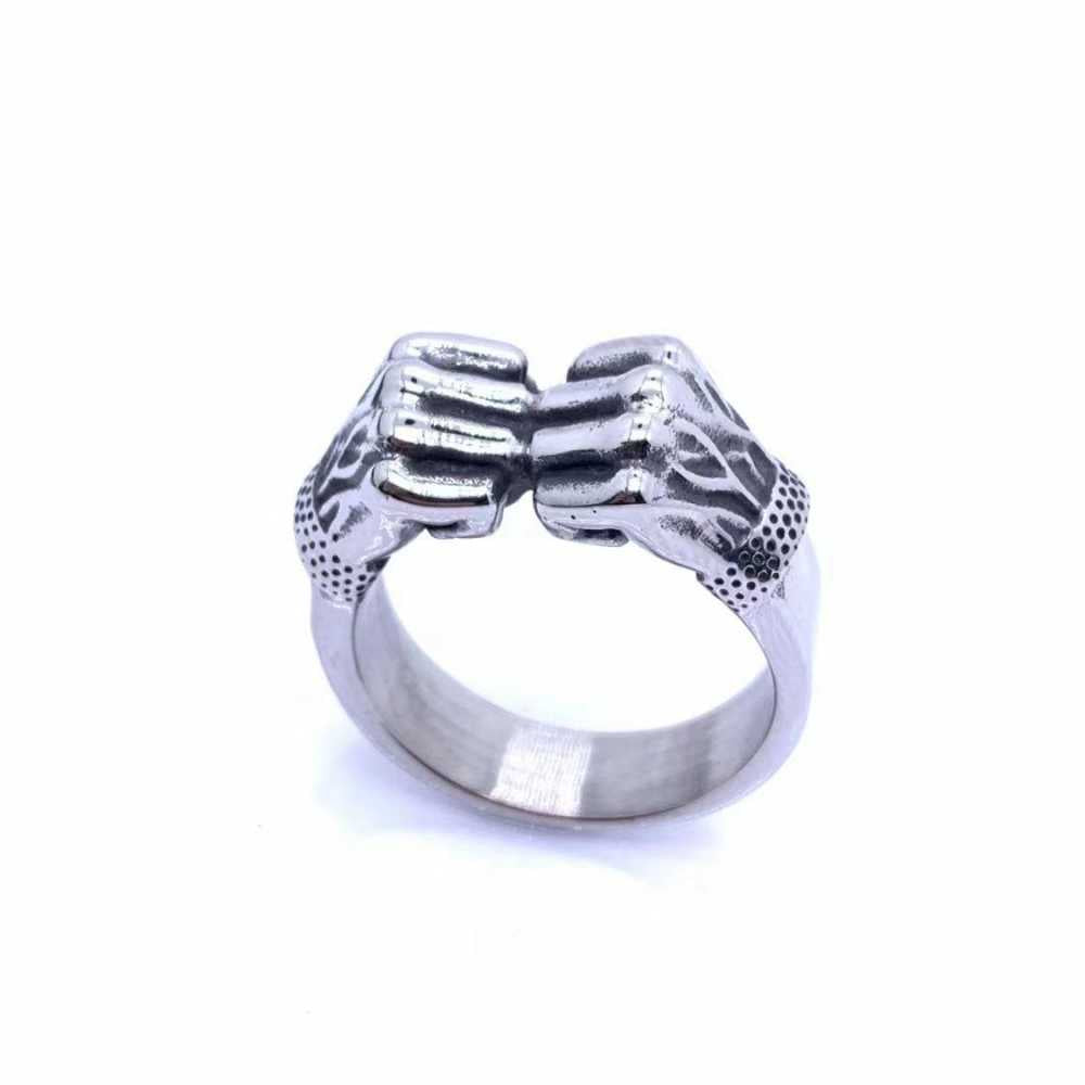 Men's Silver Plated Double Angry Fist Ring Bold Statement Accessory