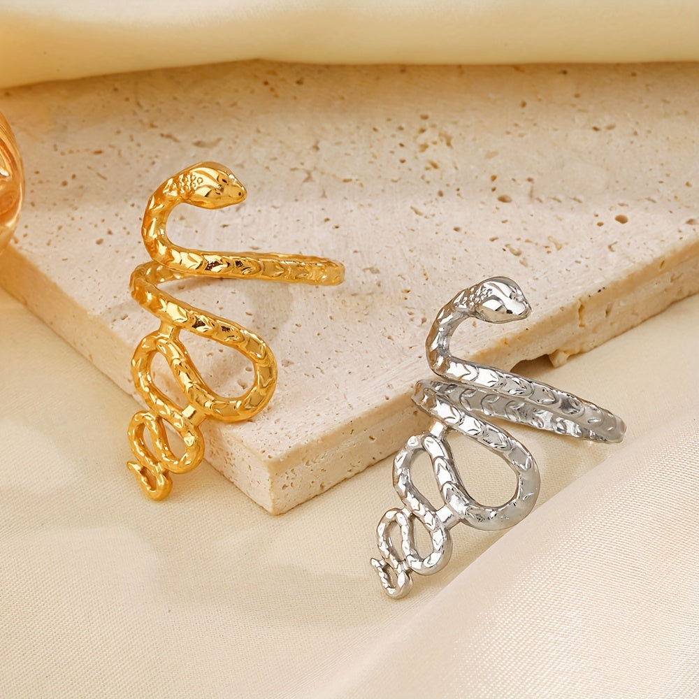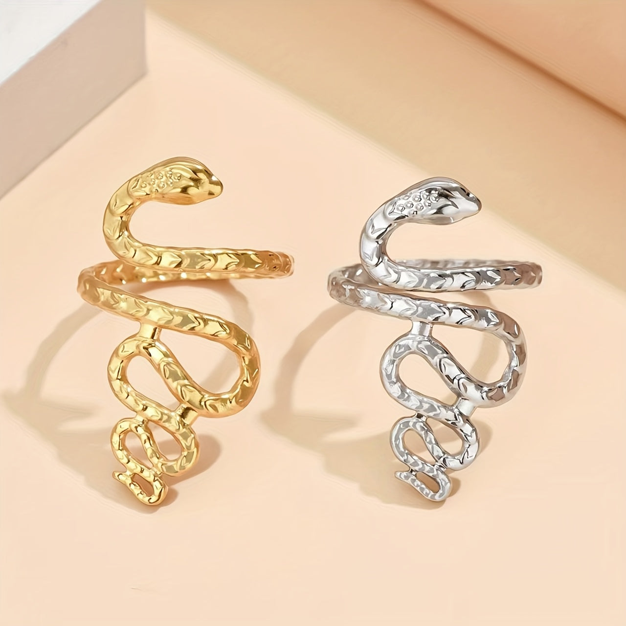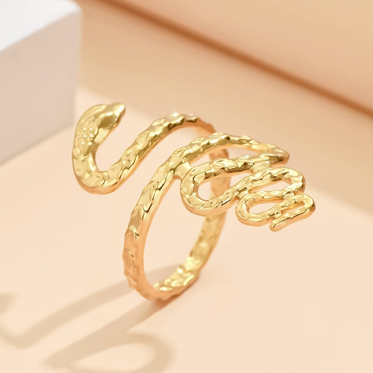 This men's snake ring is crafted from 304 stainless steel with a modern coiled design and stylish golden tone finish. It is a versatile piece of everyday jewelry that can be worn for casual or formal occasions. Durable and unisex, this ring makes a great gift option.