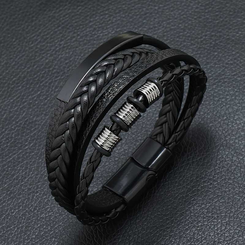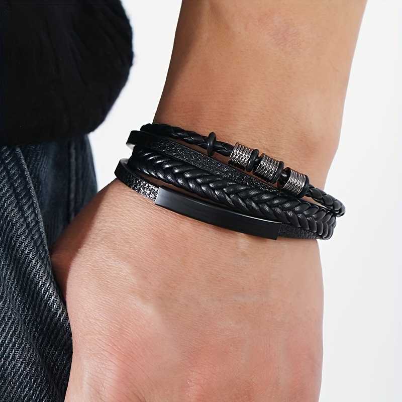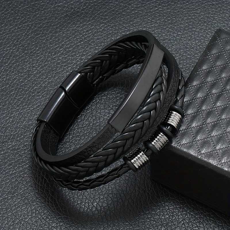 Bling Queen is an affordable fashion jewellery brand with various product types like bracelets, necklaces, earrings, rings, etc. suitable for women, men and kids. The Men's Stainless Steel Black Leather Braided Multi Layer Beaded Magnetic Bracelet is a striking fusion of ruggedness and sophistication. This meticulously crafted piece features multiple layers of intricately braided black leather, providing a textured and rich appearance that is both stylish and appealing. Accentuating the leather are polished stainless steel elements that offer a sleek contrast, enhancing the overall modern aesthetic. The bracelet incorporates carefully placed beaded accents, adding a touch of artistry and depth to the design. These beads, crafted from high quality materials, catch the light beautifully, creating an eye catching effect that draws attention. The innovative magnetic clasp not only ensures secure fastening but also adds a contemporary flair, making it easy to wear while maintaining a streamlined look.