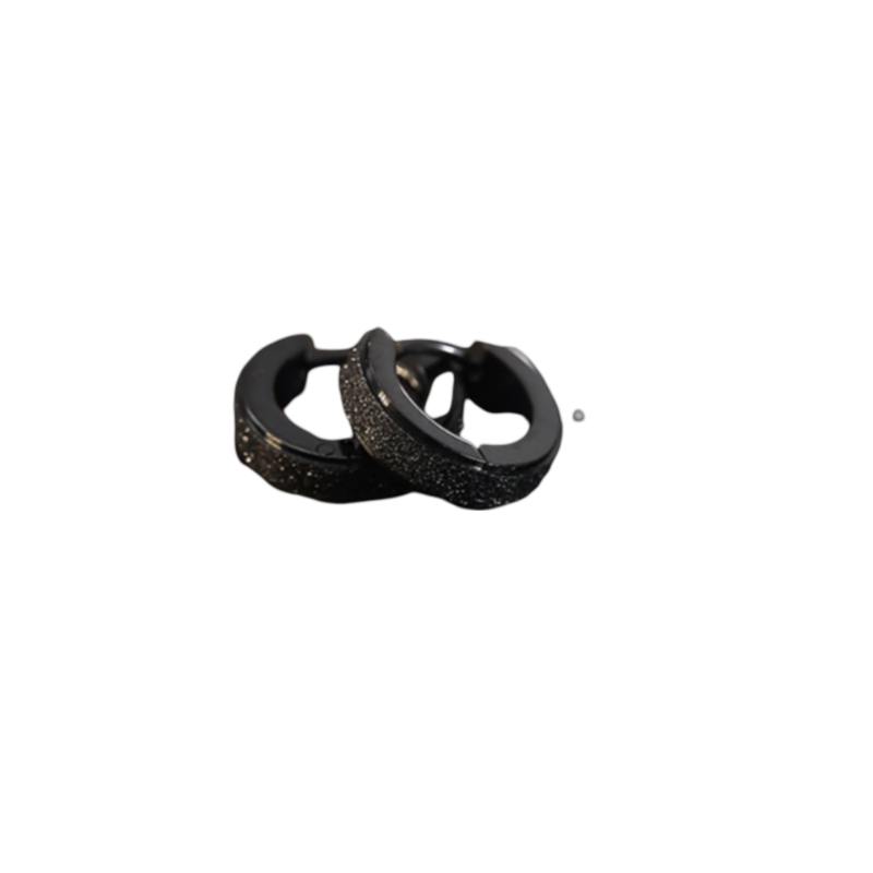 Men's Stainless Steel Black Frosted Glitter Hoop Stylish Earrings