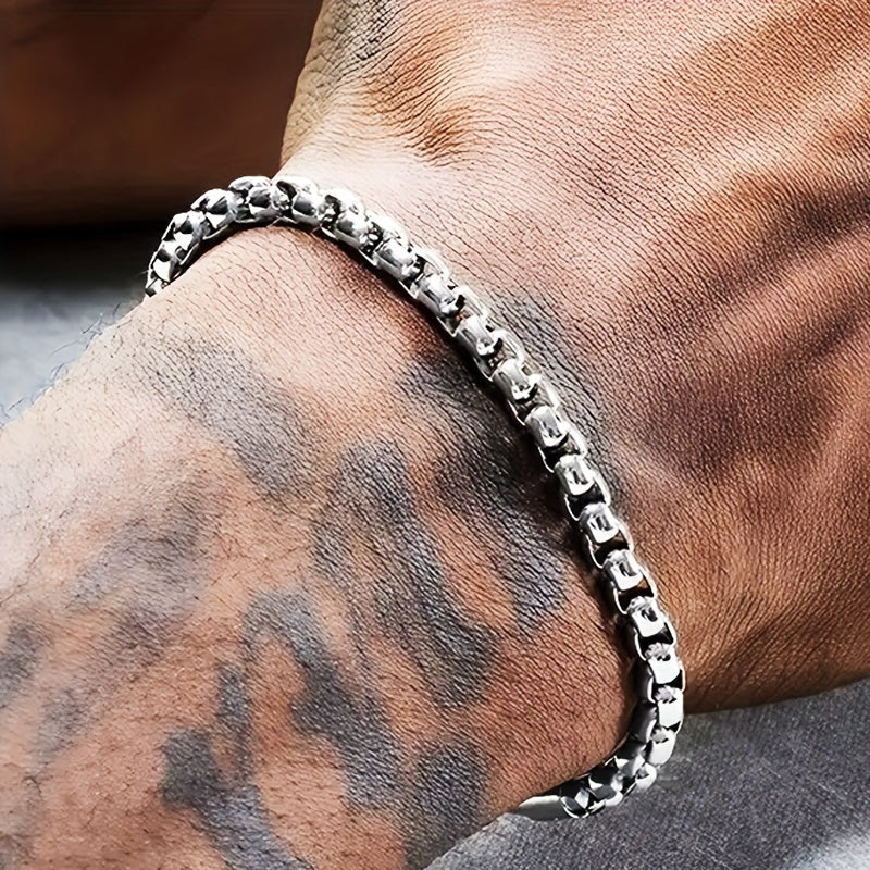 This stainless steel bracelet features a pearl chain with 4mm width, making it ideal for vacation, parties, or as a gift accessory. It is hypoallergenic and fade-resistant.