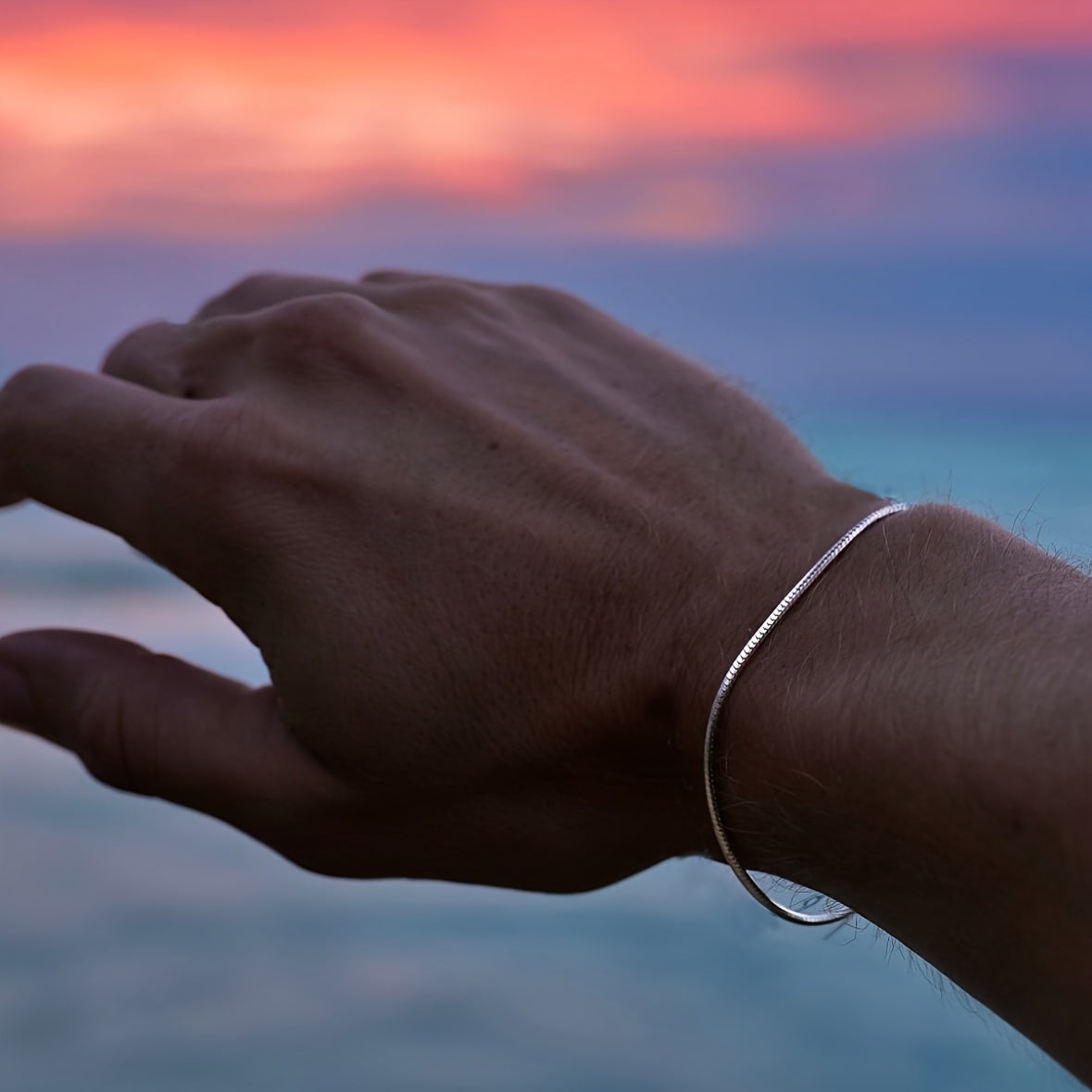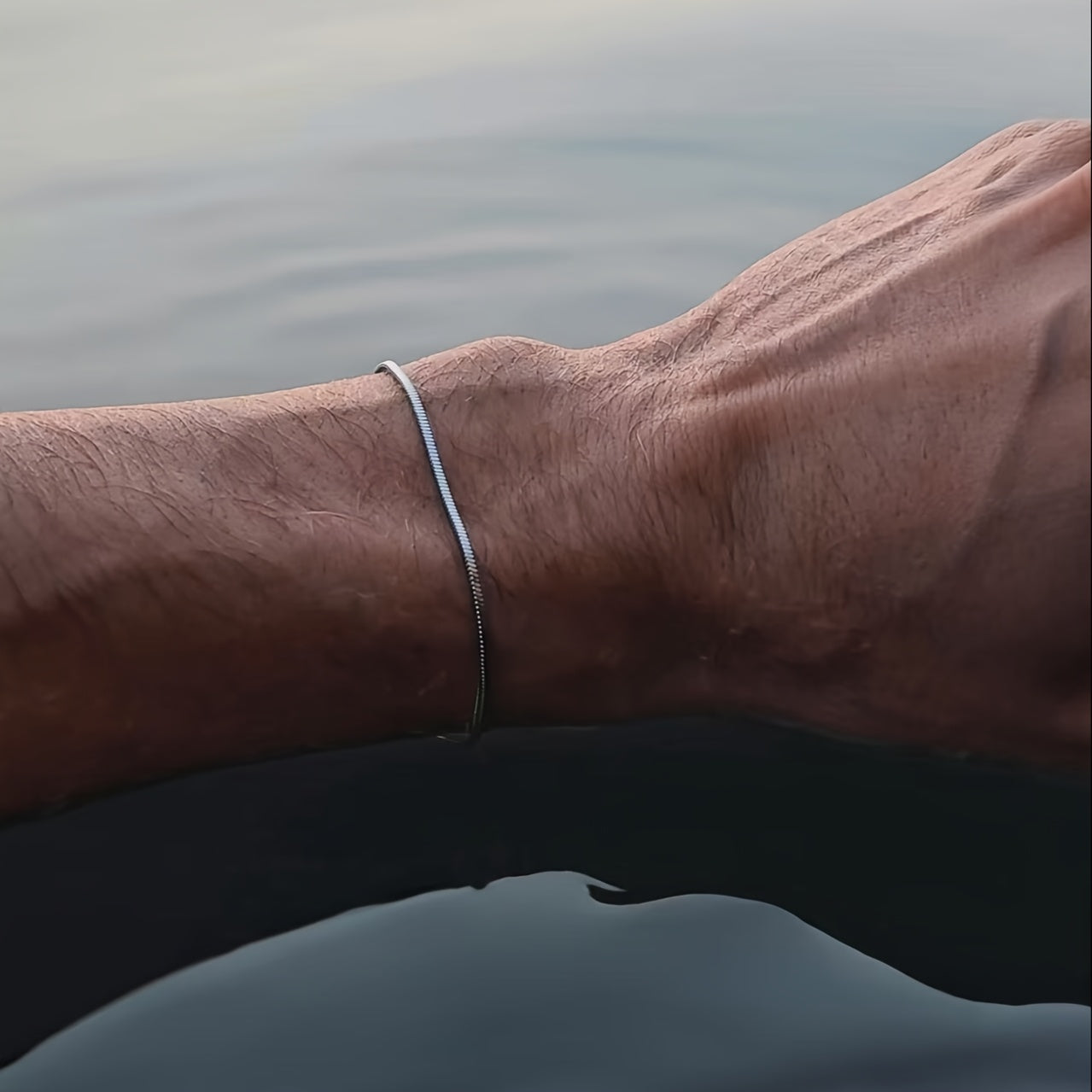 This minimalist stainless steel bracelet is versatile for both casual and formal wear. Its modern design makes it a timeless piece of jewelry for everyday and special occasions.