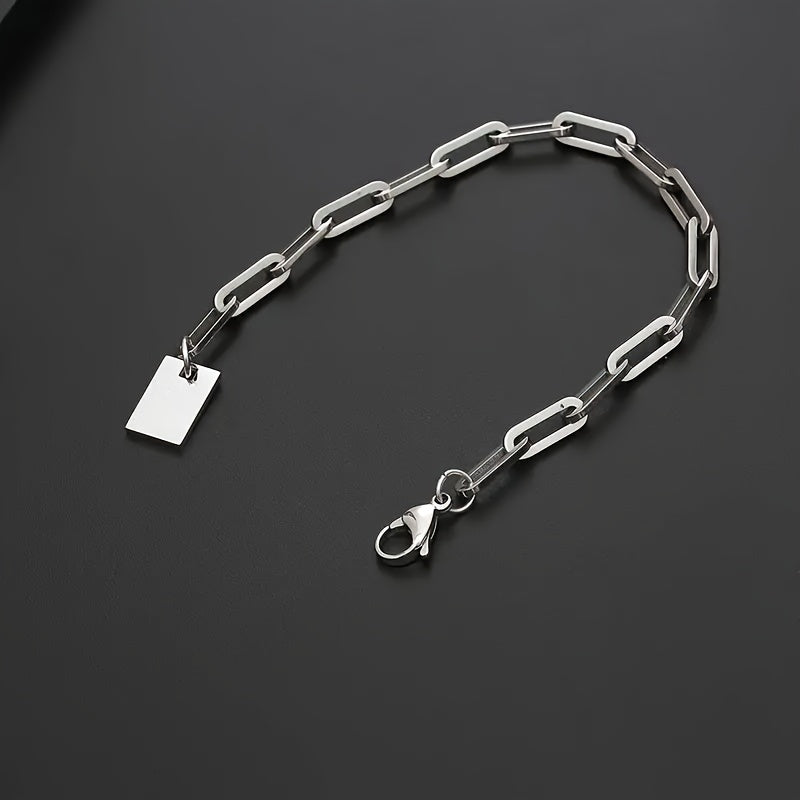 This stylish rectangular chain for men is crafted from durable stainless steel and can be engraved with any words. Suitable for a hip hop style pendant bracelet.