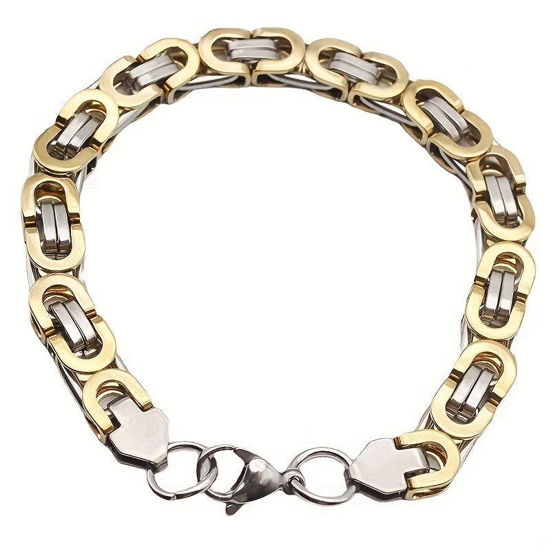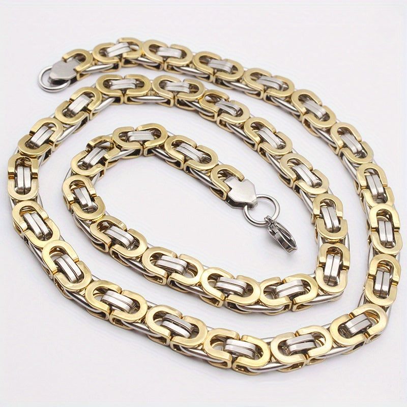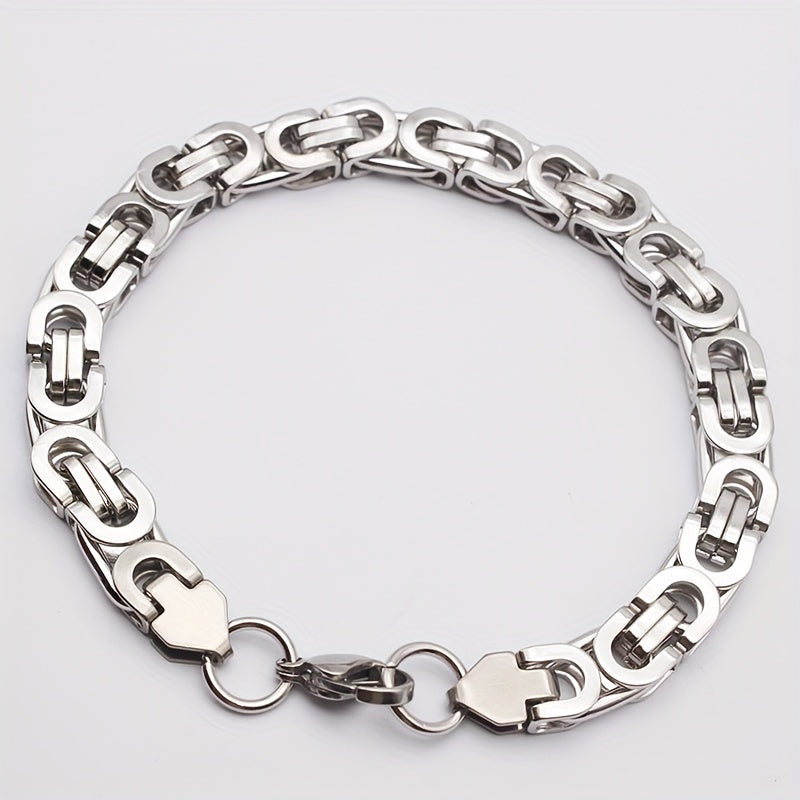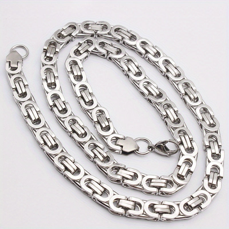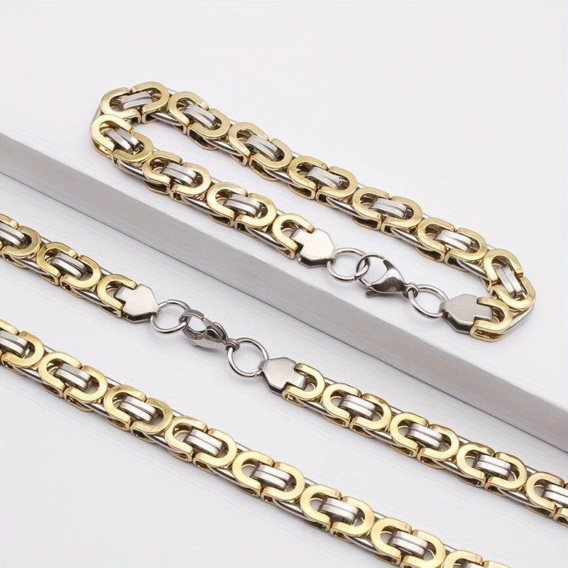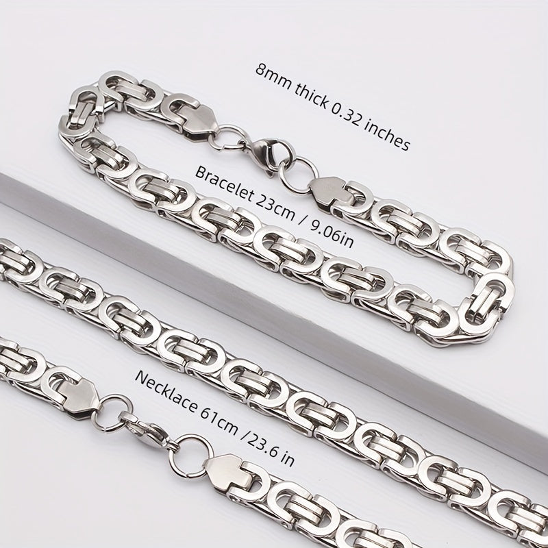 This men's stainless steel jewelry set includes a necklace and bracelet. The hip hop style flat section chain is perfect for adding a bold touch to your outfit.