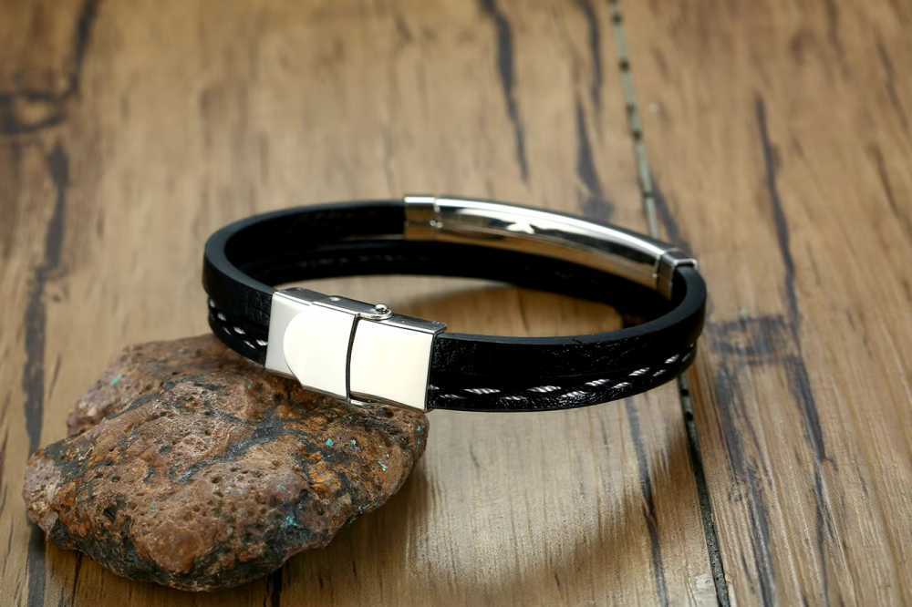 Bling Queen is an affordable fashion jewellery brand with various product types like bracelets, necklaces, earrings, rings, etc. suitable for women, men and kids. At the heart of this bracelet lies high quality black leather, chosen for its luxurious texture and comfort. The leather is treated to ensure it remains supple while maintaining its natural grain, offering a classic aesthetic that enhances any outfit. Its deep black color provides versatility, allowing it to complement a wide range of styles, from casual wear to formal attire. The bracelet features a striking slot design that sets it apart from traditional leather bracelets. The slots add a dynamic visual element, creating an intriguing interplay between the leather and the stainless steel layers. This design not only enhances the bracelet’s aesthetic appeal but also emphasizes the craftsmanship involved in its creation. The inclusion of stainless steel in the design elevates the bracelet’s modernity. The rectangular layers of polished stainless steel contrast beautifully with the matte leather, creating a sophisticated balance.