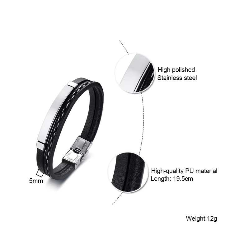 • Product Particulars: This bracelet is made of high quality black leather plated with stainless steel. Crafted with secure, comfortable and easy closure.