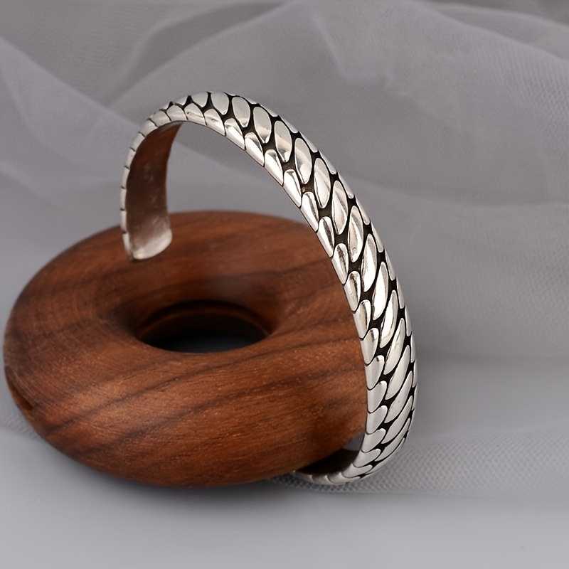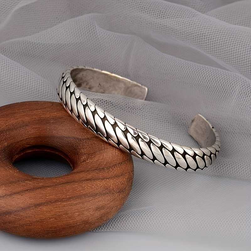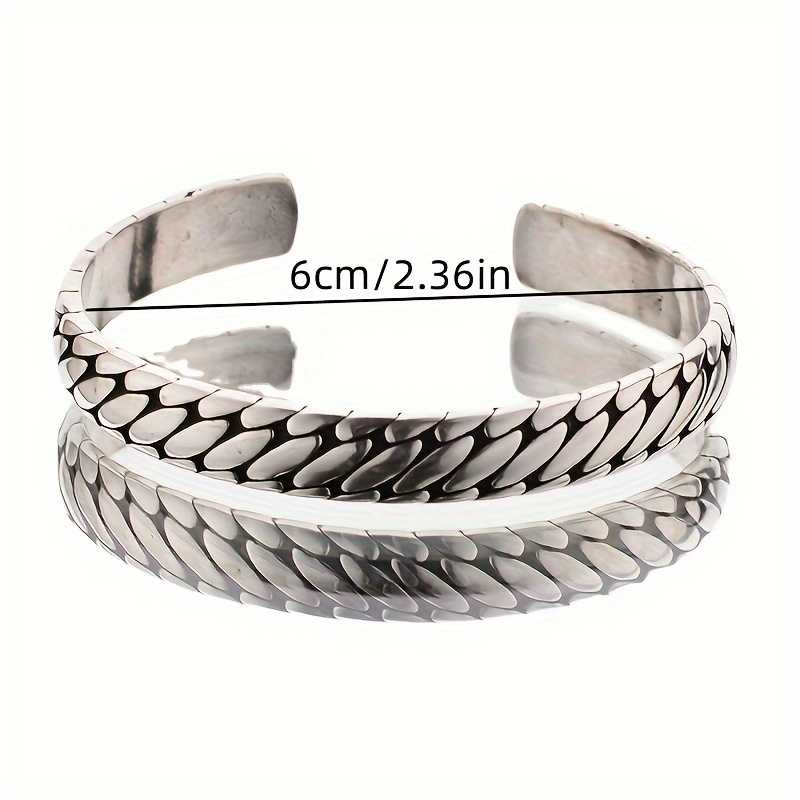 Men's Sterling Silver Plated Engraved Tire Pattern Cuff Bracelet