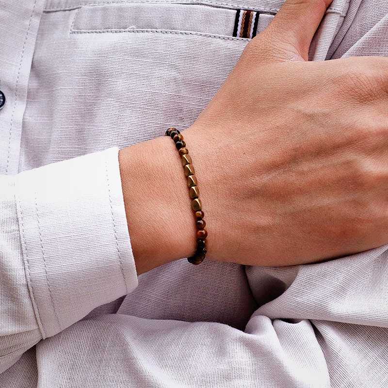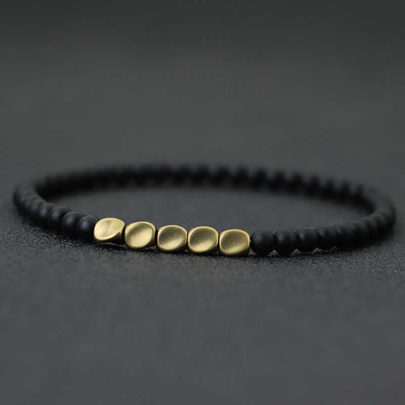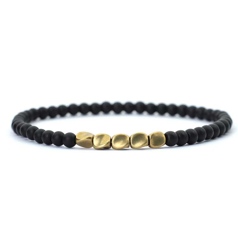 Men's Stylish Stretchable Gold Plated And Black Beaded Bracelet