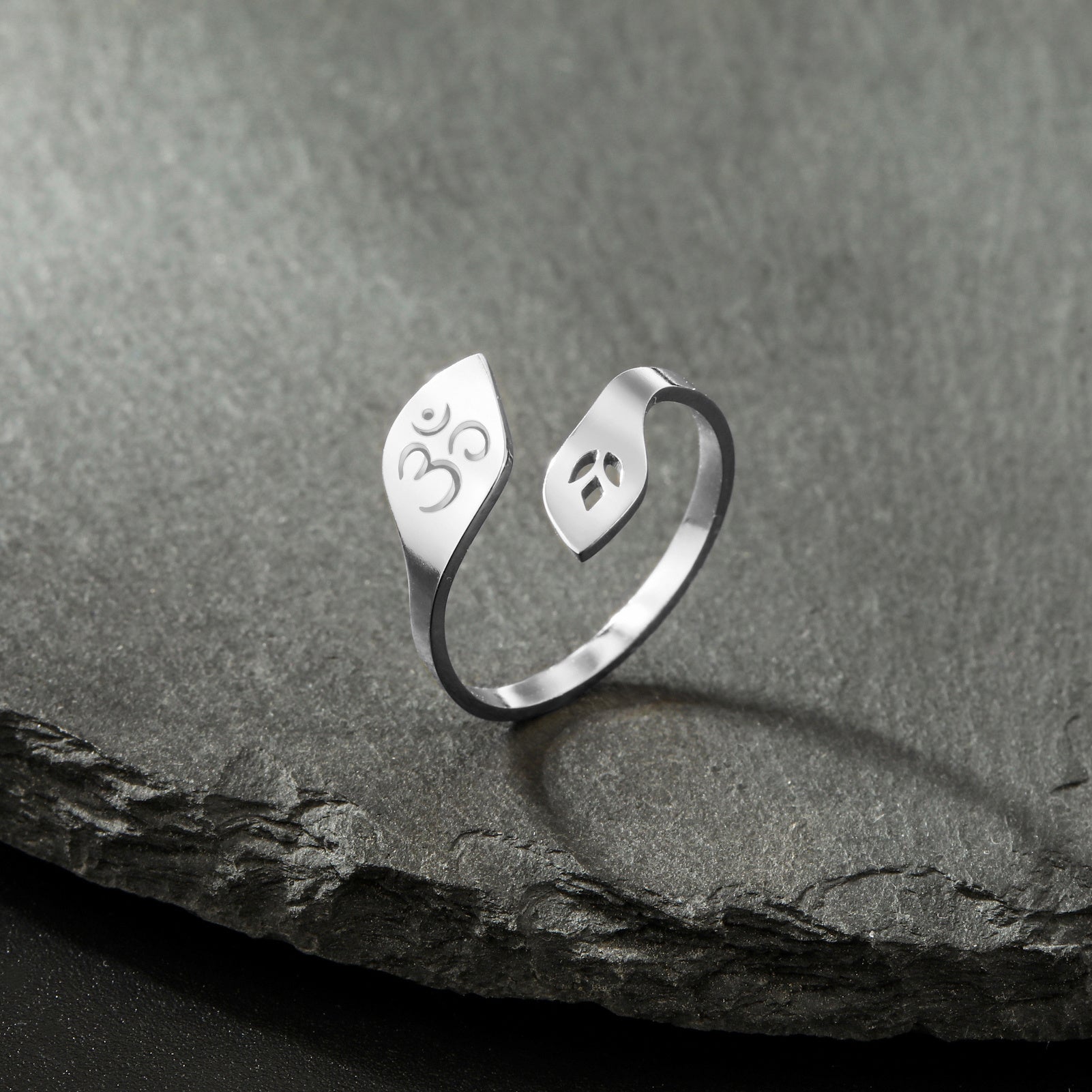This adjustable stainless steel ring features a minimalist design with an OM yoga symbol, perfect for sports, fitness, birthdays, anniversaries, and daily wear.