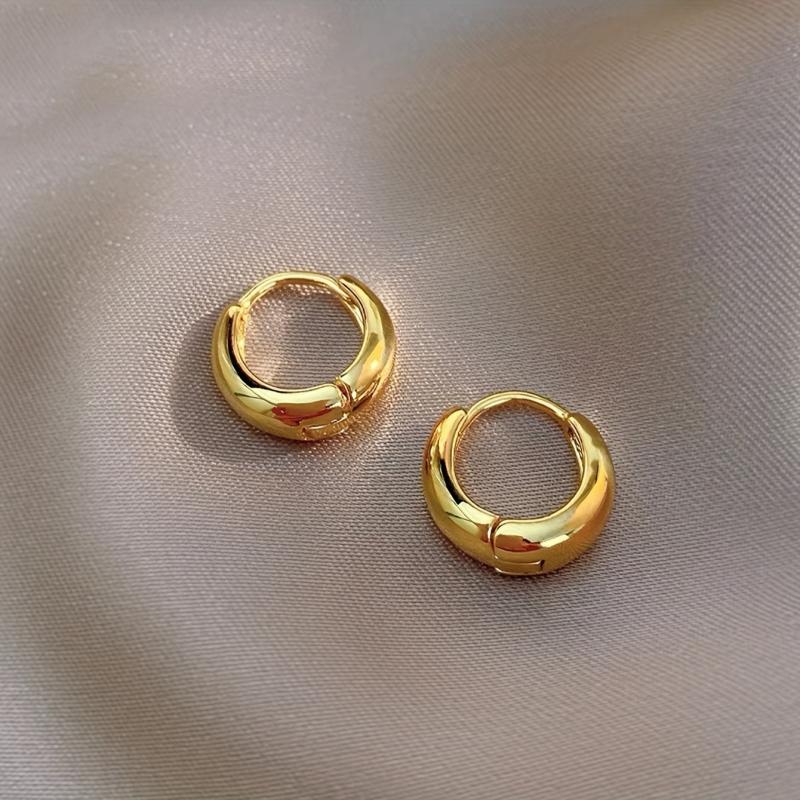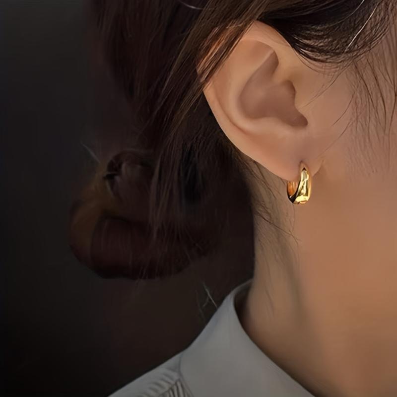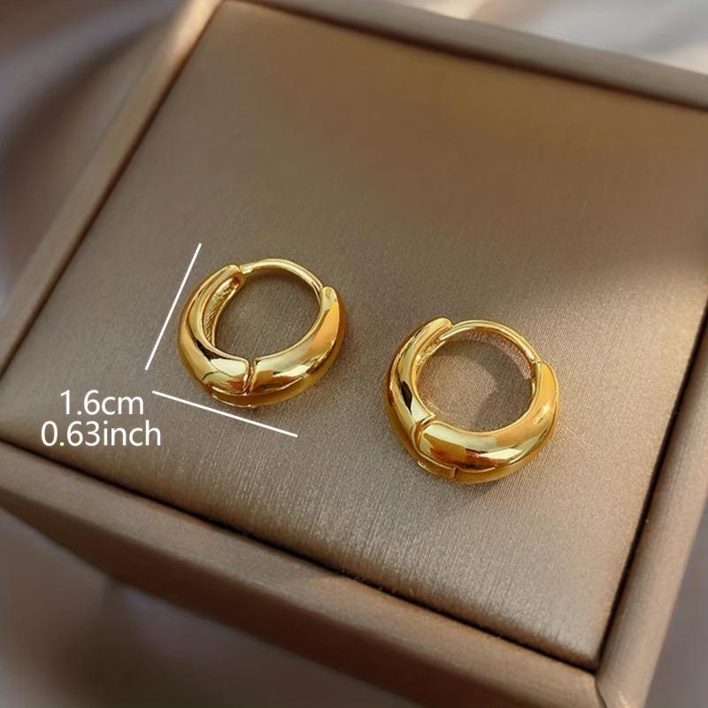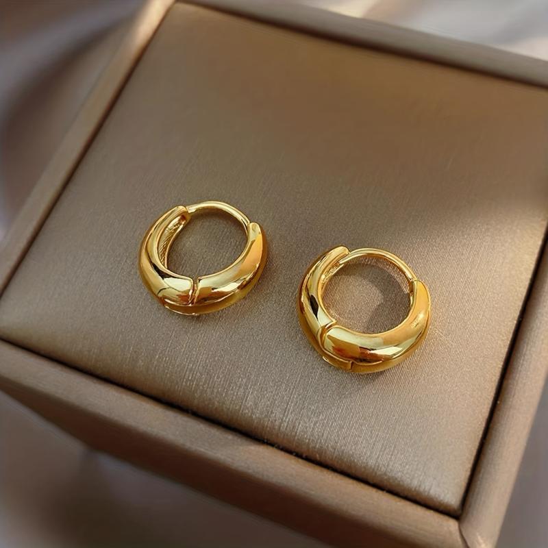 These sleek hoop earrings in a golden tone are perfect for everyday wear or formal occasions. Their minimalist design exudes timeless elegance suitable for all seasons.