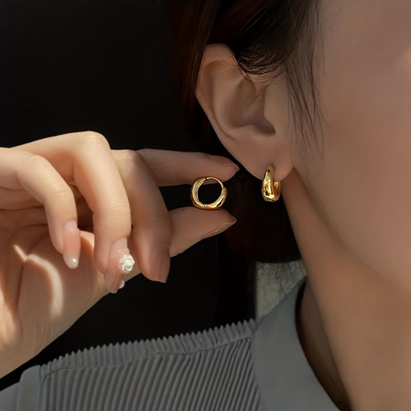 Minimalist Geometric Hoop Earrings Golden Tone Elegant Jewelry for Women