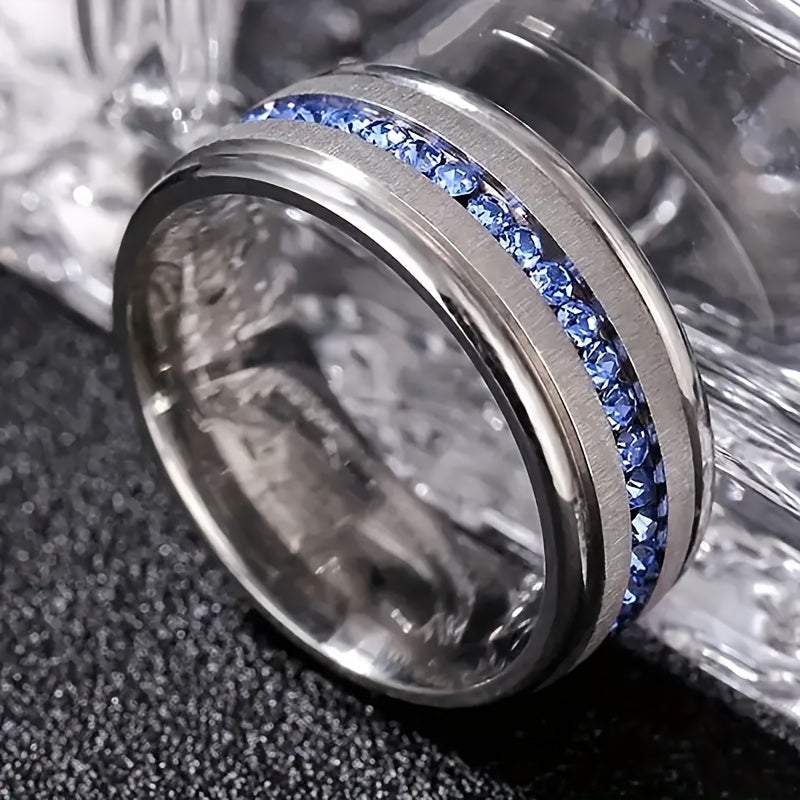 This stylish men's ring features a modern design made from durable 304L stainless steel. The ring is adorned with rhinestones, making it perfect for engagement, wedding, or anniversary gifts.