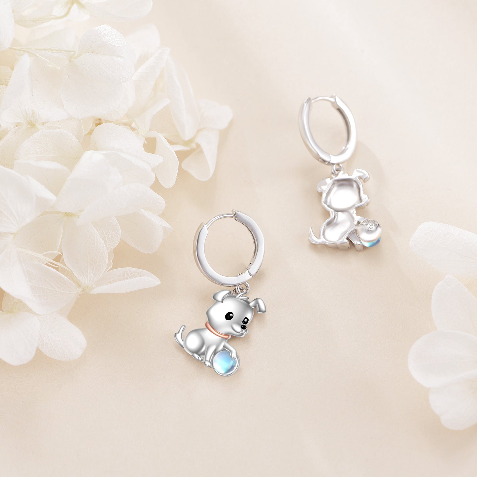 Moonstone Dog Circle Earrings for Women - Pet Jewelry