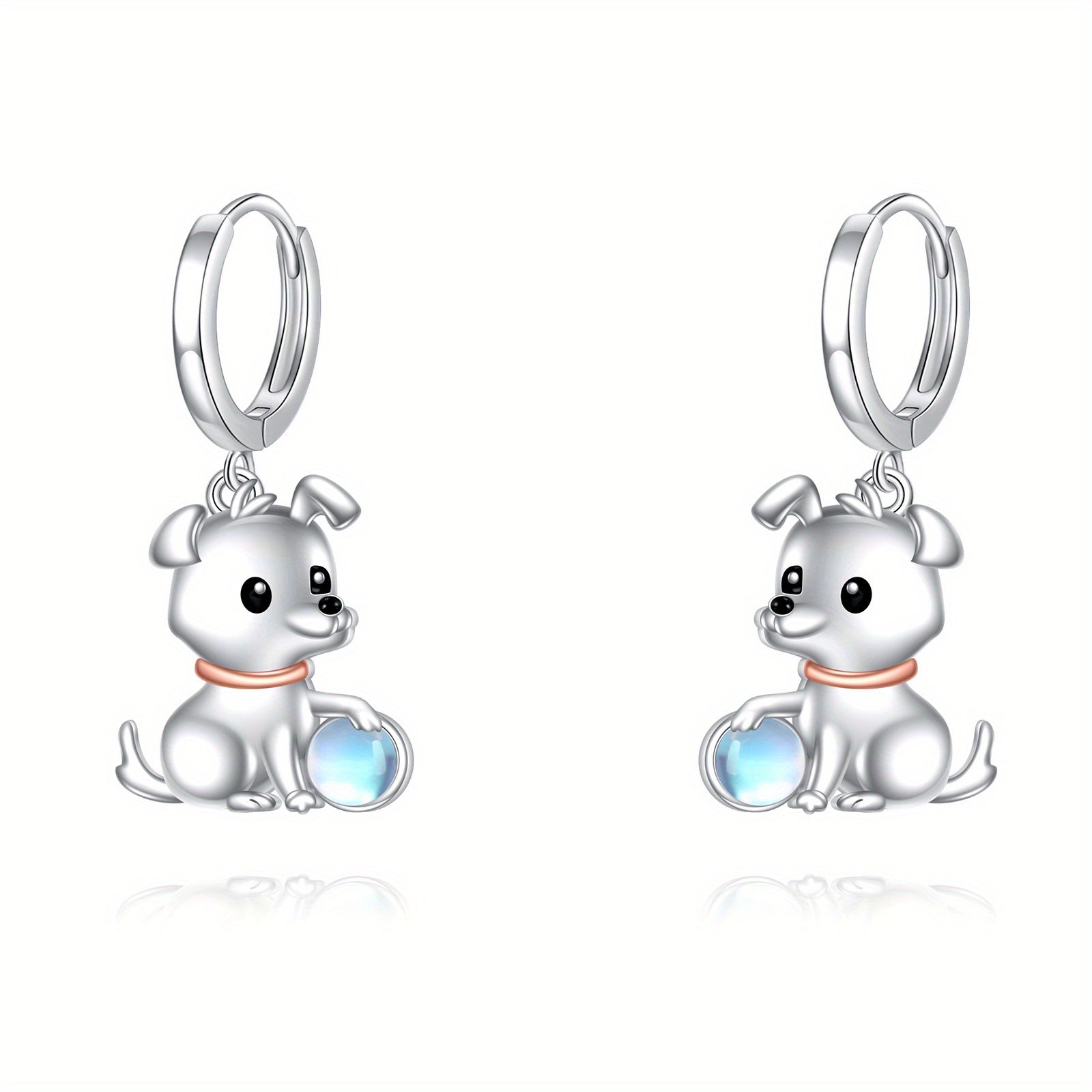 Add a touch of whimsy to your look with these pure silvery moonstone dog circle earrings designed for women. Perfect jewelry for girls who love their pet!