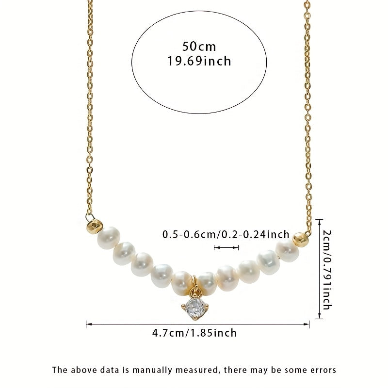 This exquisite pearl necklace features natural freshwater pearls with varying shapes and colors. Each necklace is unique with random patterns and positions.