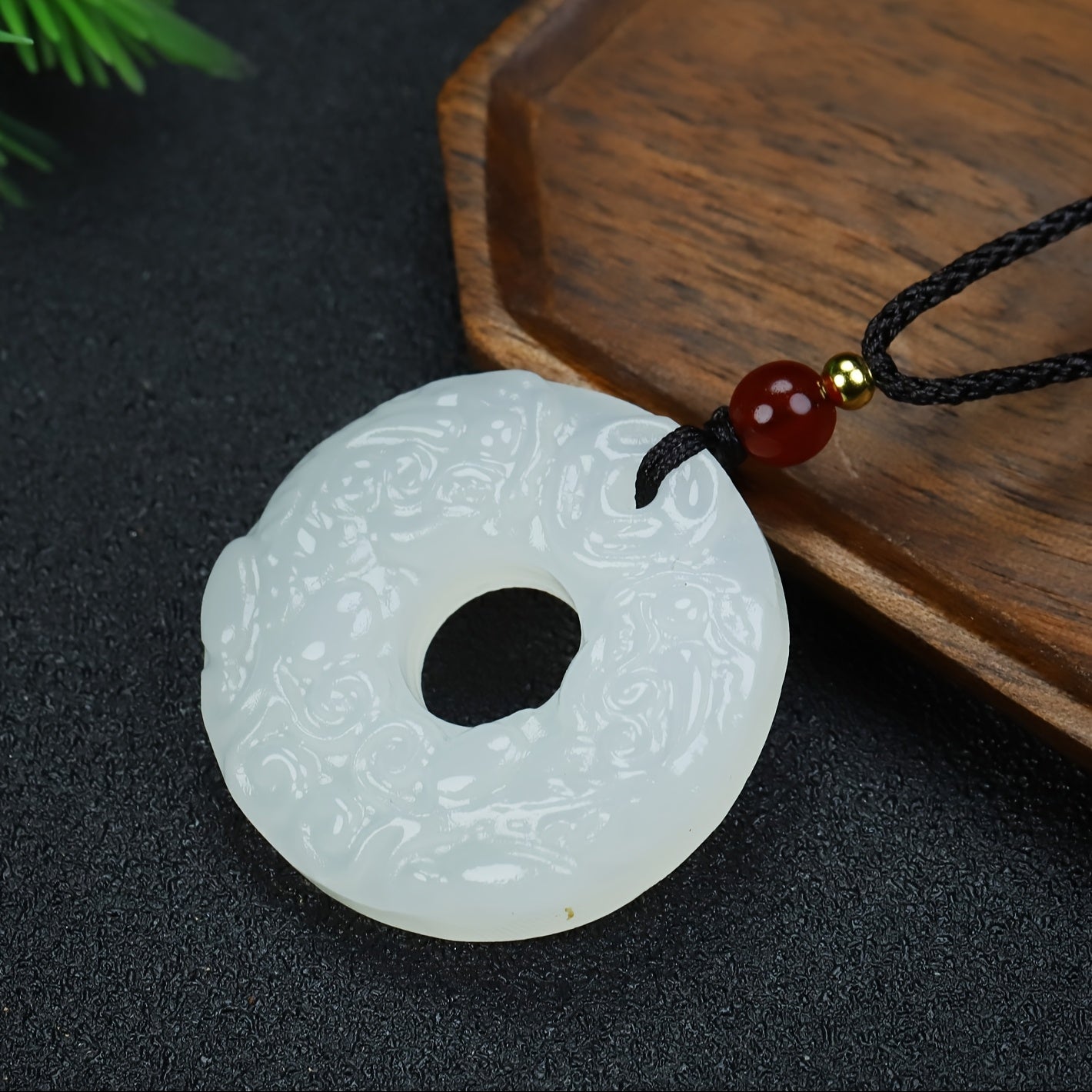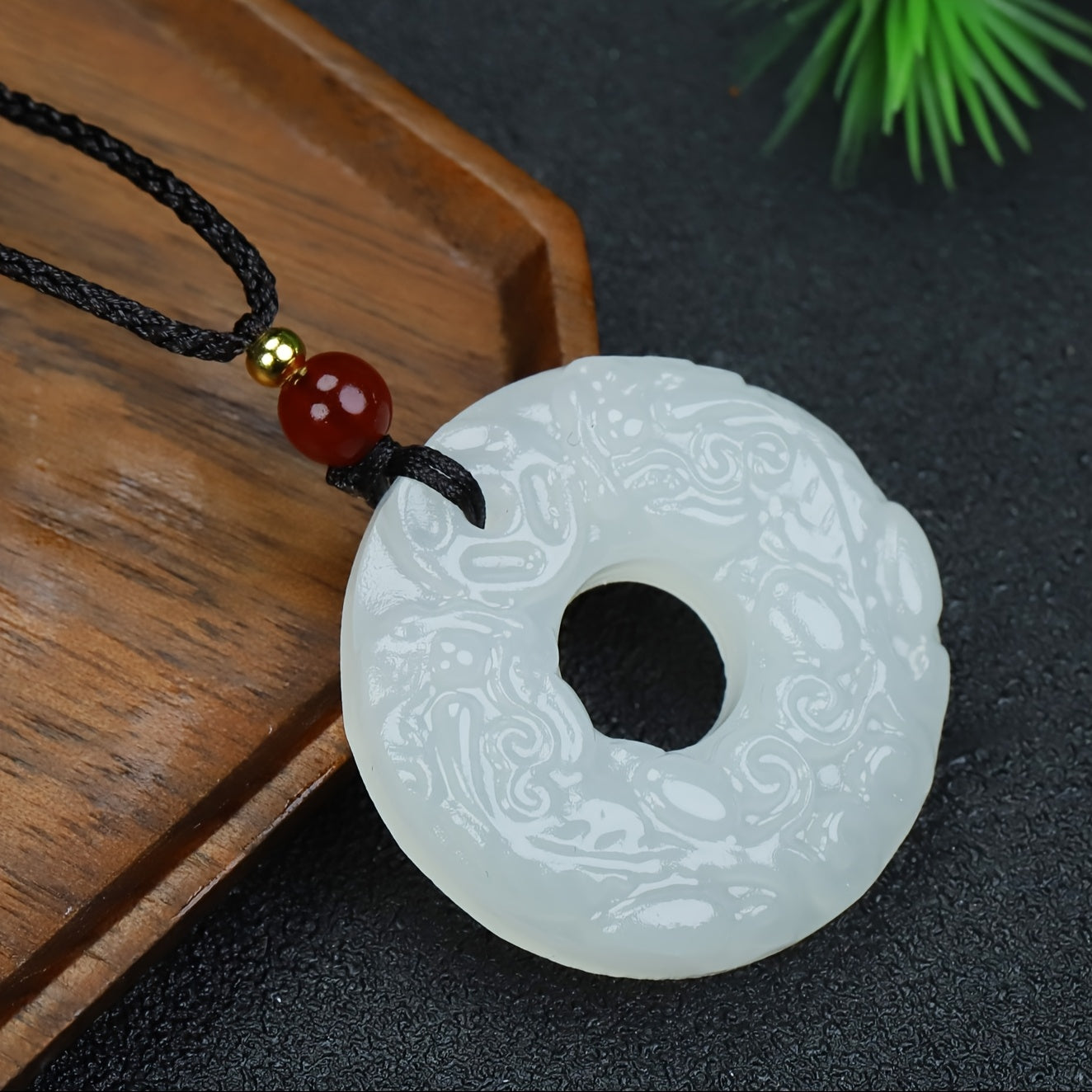 This versatile pendant necklace features a natural stone with intricate brown patterns. It is suitable for both men and women, adding a touch of elegance to casual or formal attire.
