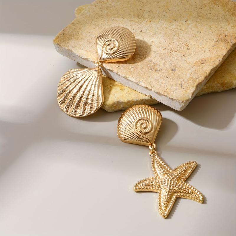 • Golden tone earrings with ocean-inspired charms