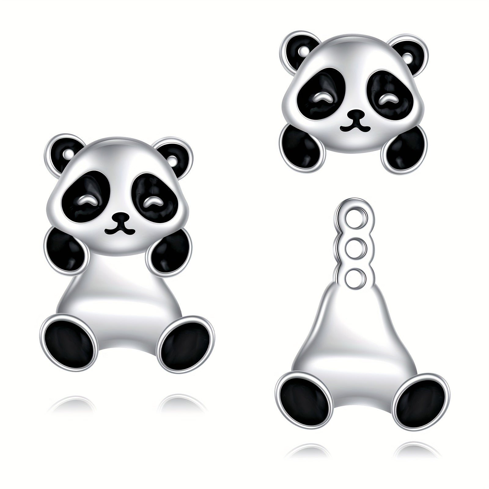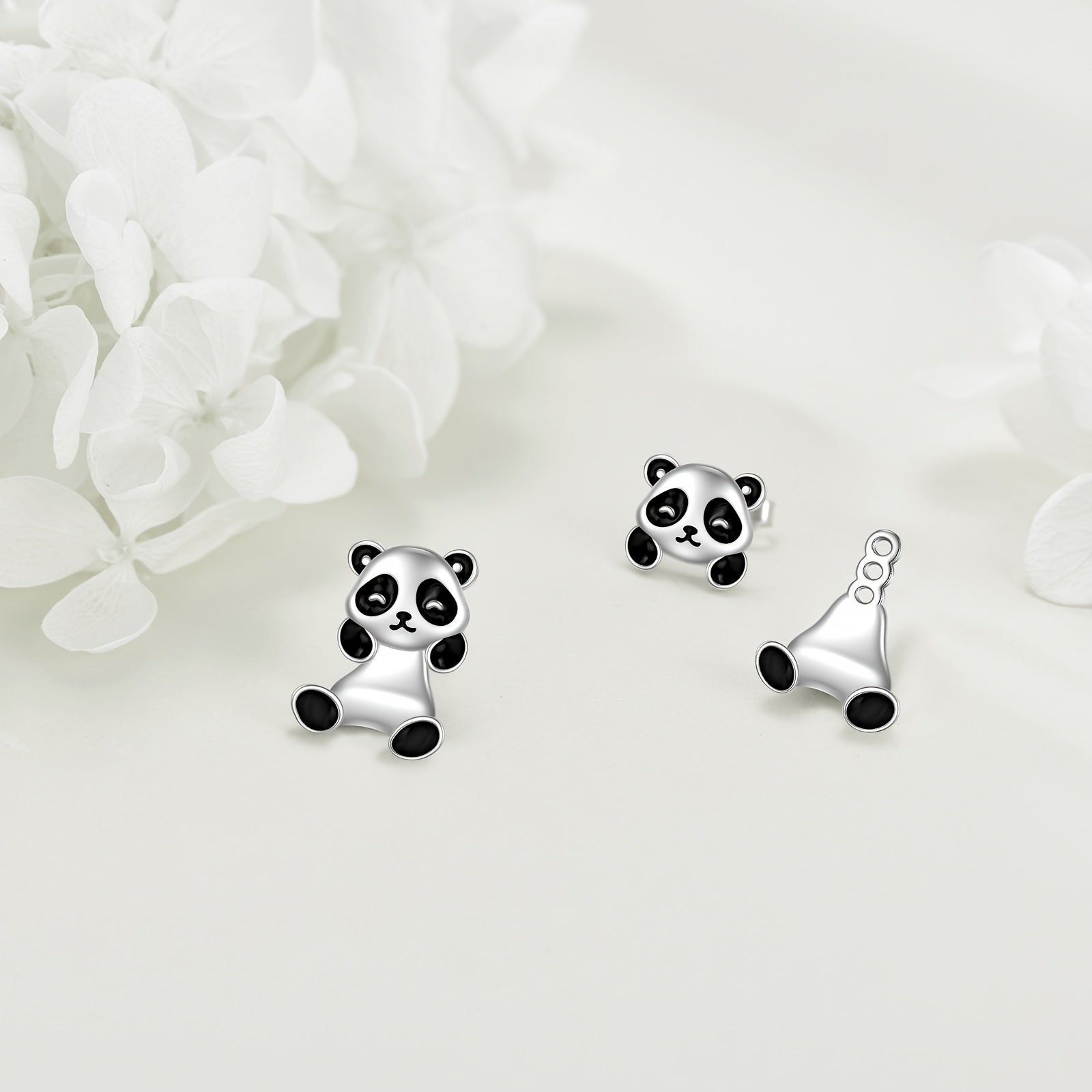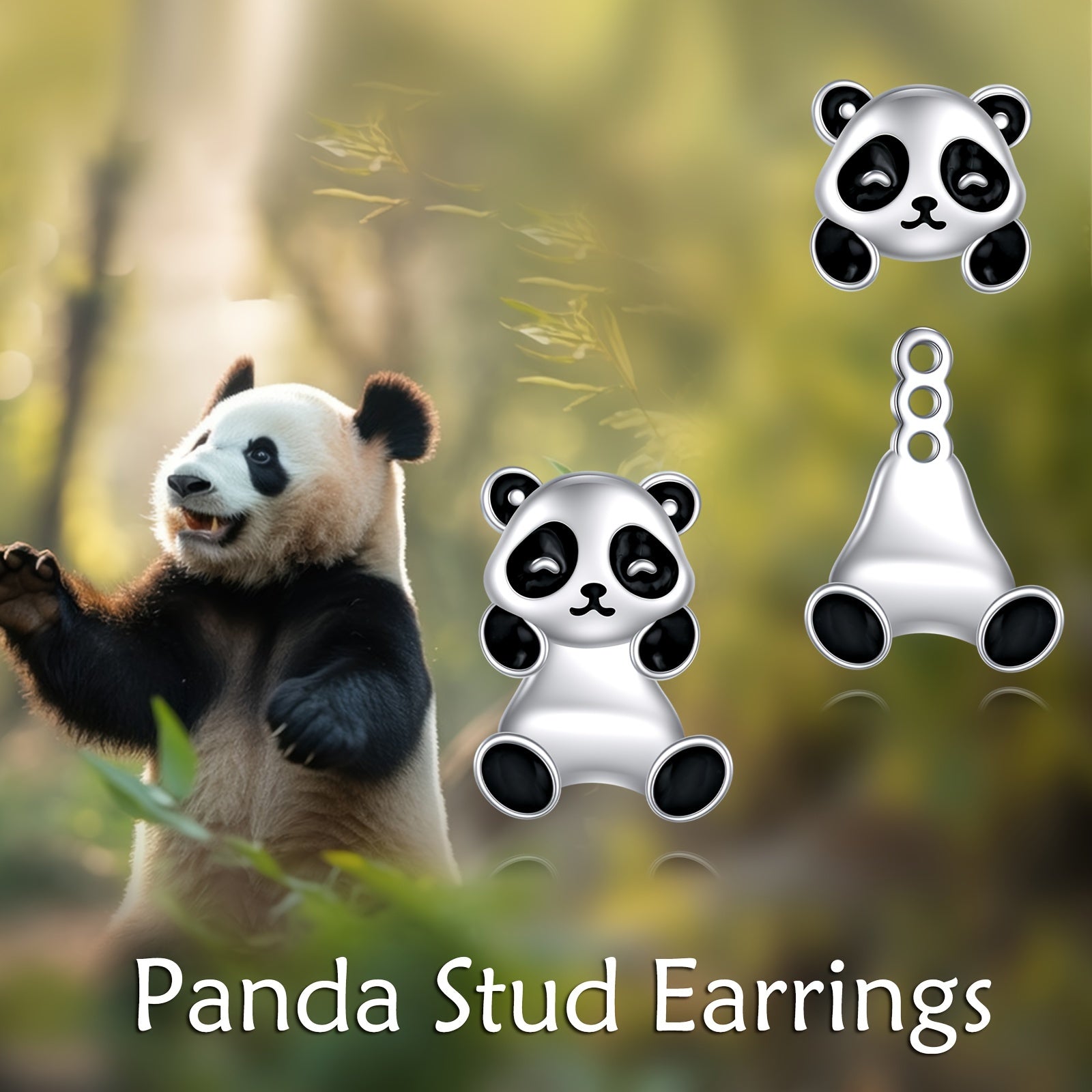Adorable panda stud earrings made of sterling silver, perfect for women who love animal-themed jewelry.
