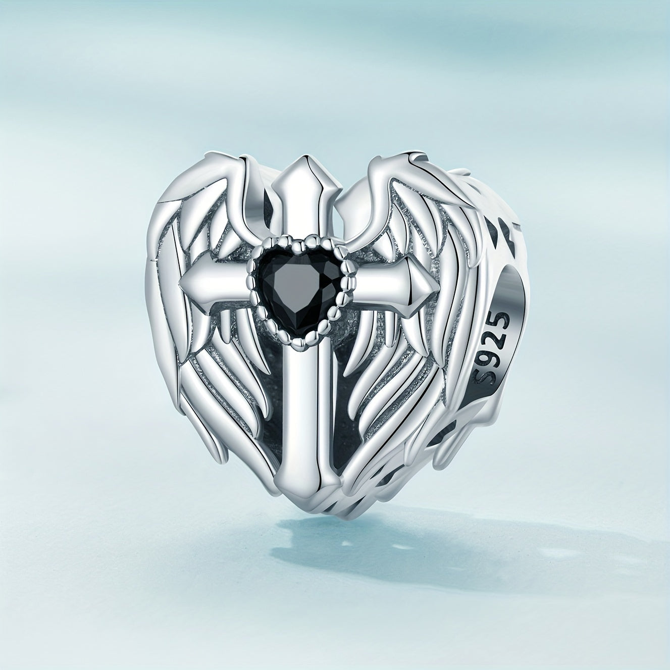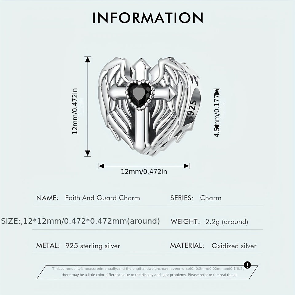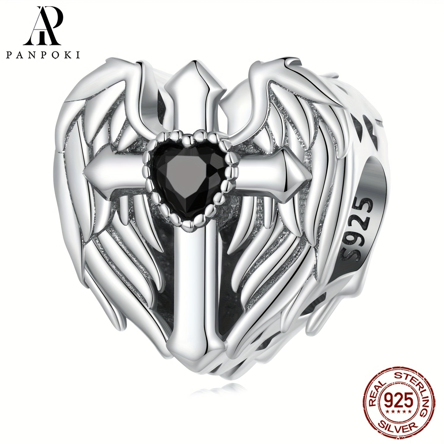 Elegant PANPOKI 925 sterling silver wings and cross heart shape beads pendant designed for women's bracelets and bangles. Create your unique jewelry with this fine piece.