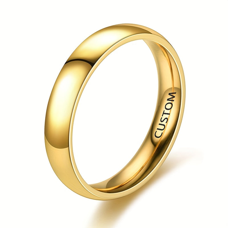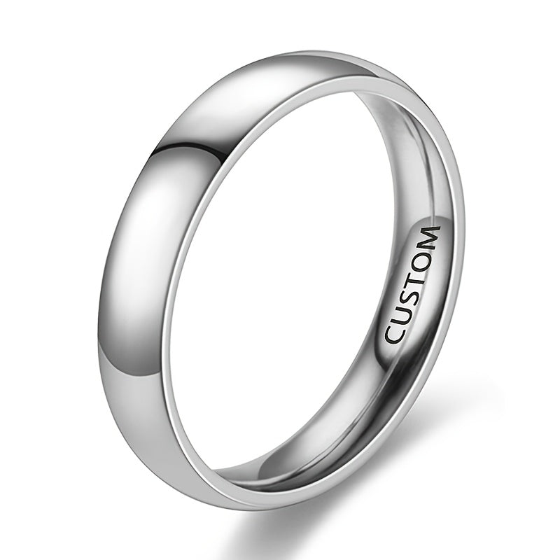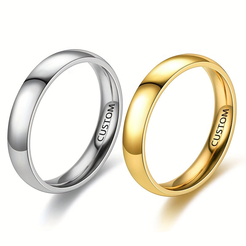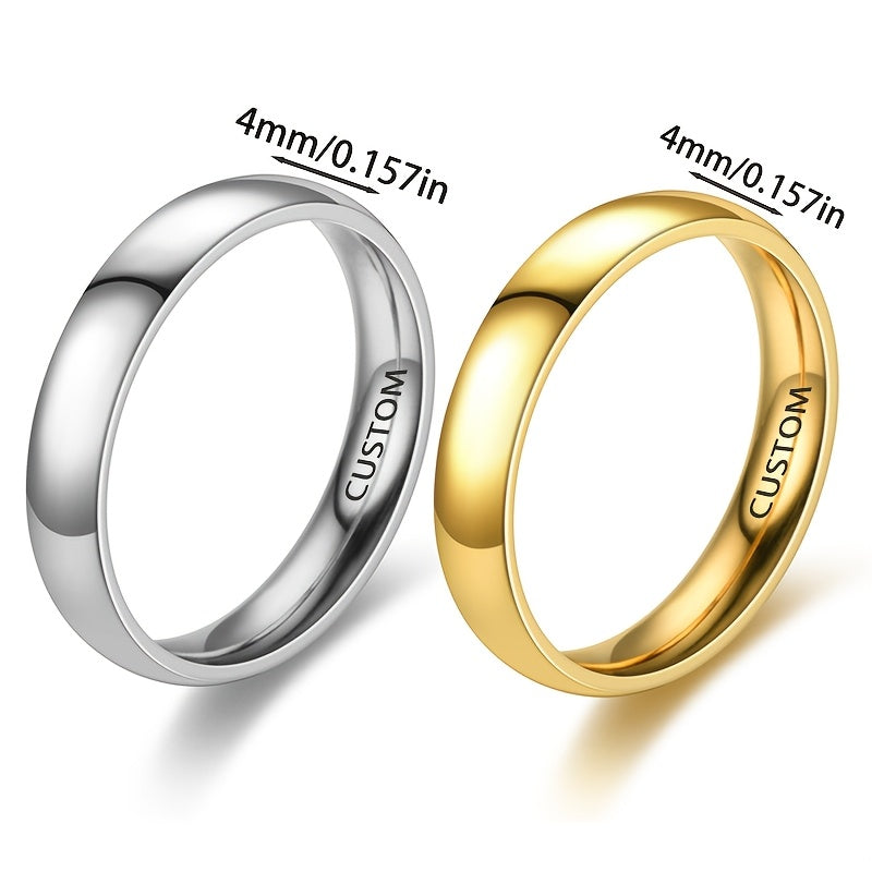 Personalized Engraved Couple Rings with Initials and Date Stainless Steel 4mm