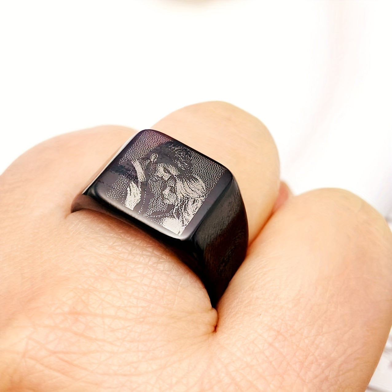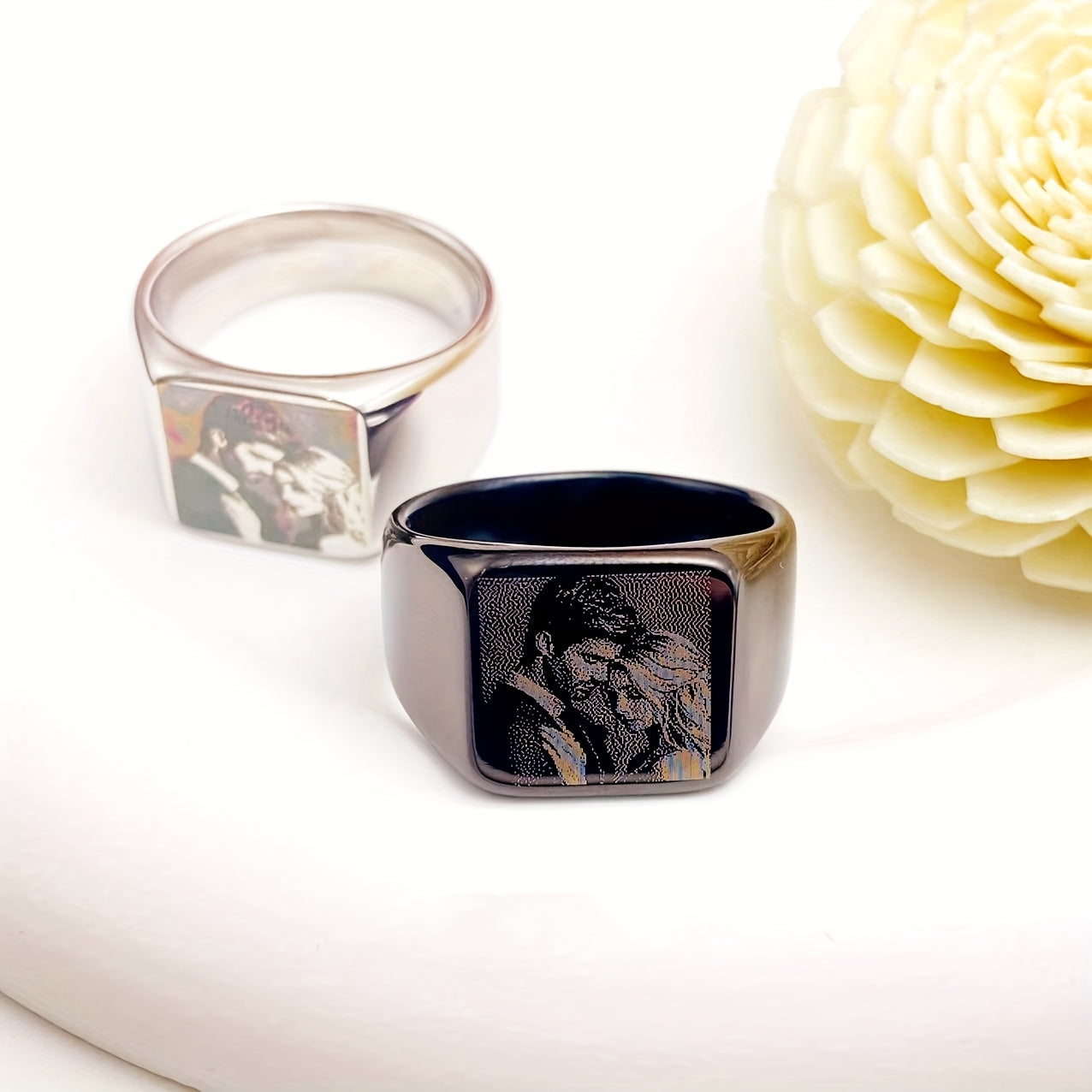 Customize this ring with a photo and gift it to your loved one. The ring is made of stainless steel and is ideal for daily wear. This is a perfect gift for men and women, especially those born in April or for a vacation style look.