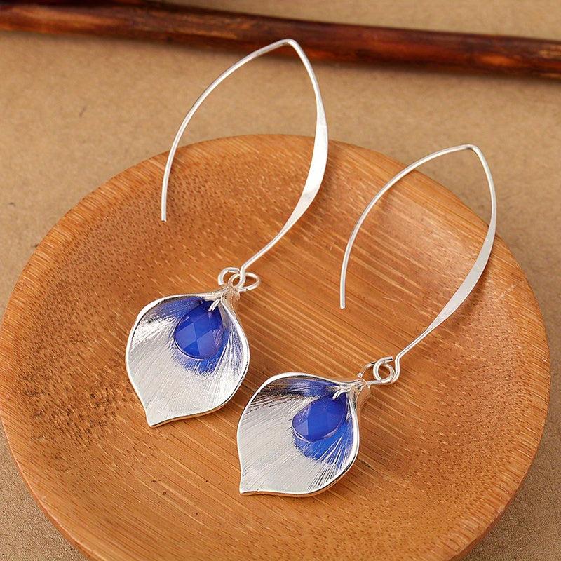 Add a touch of elegance with these delicate petal dangle earrings featuring rhinestones. Perfect for any occasion.
