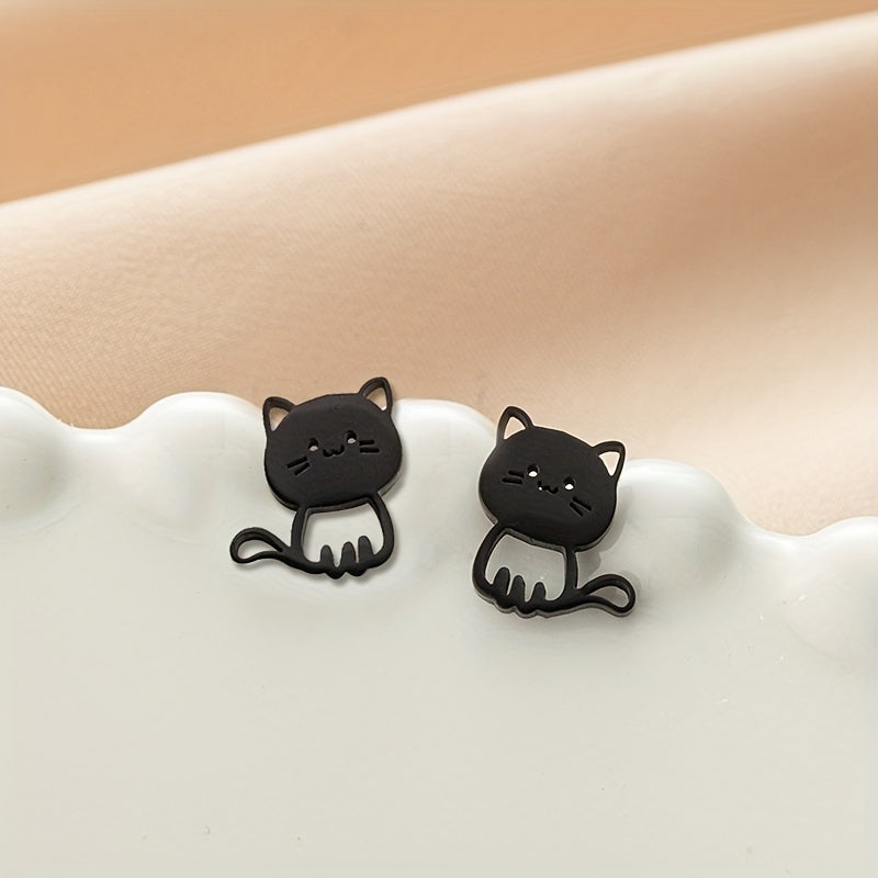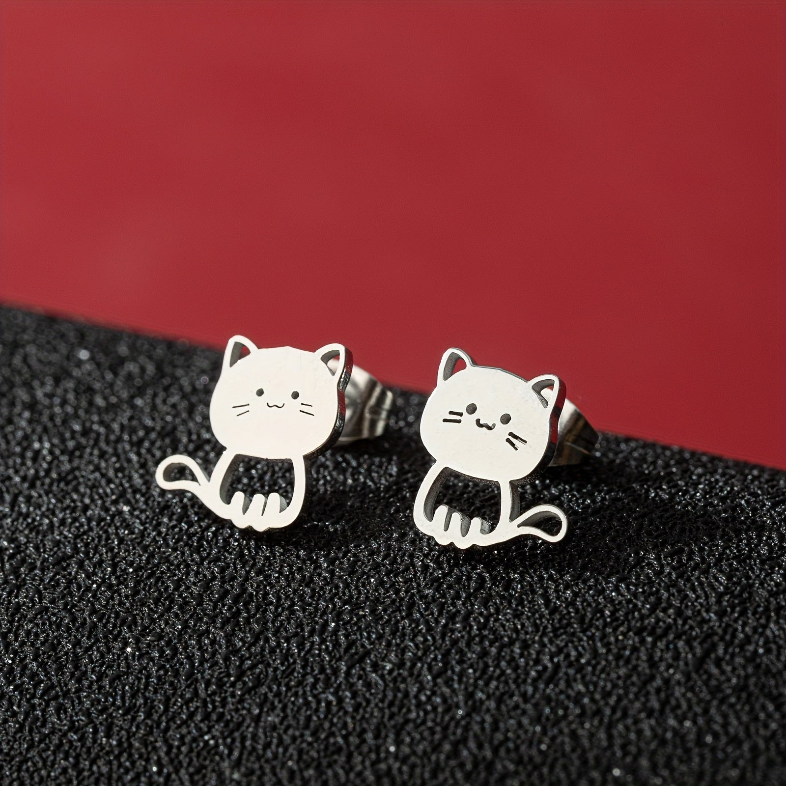 Punk Cartoon Cat Earrings Bohemian Style Stainless Steel 316