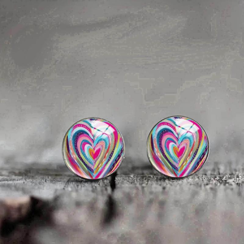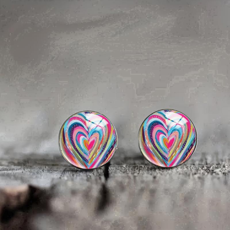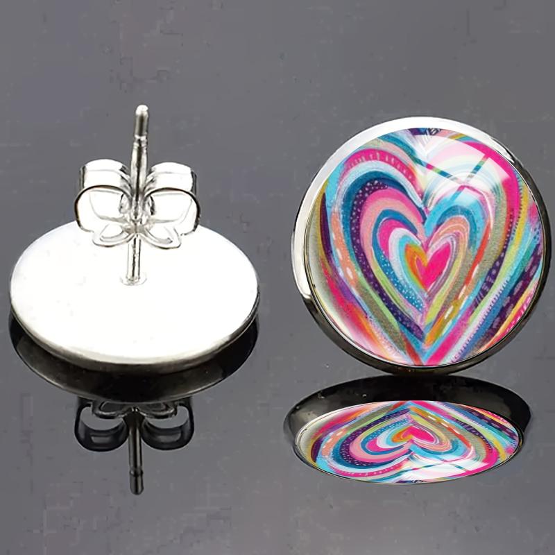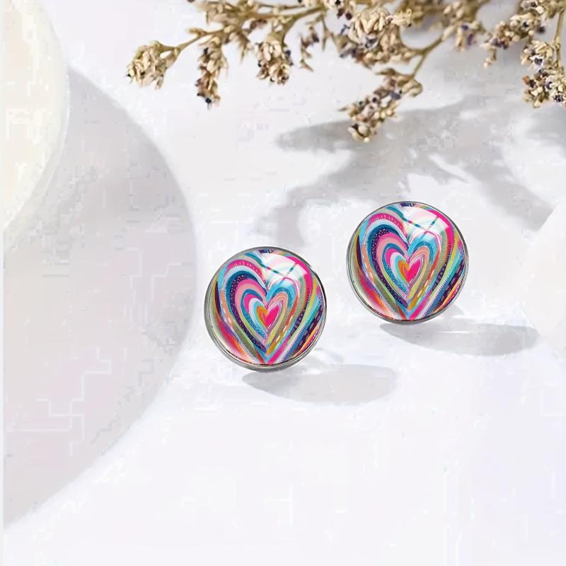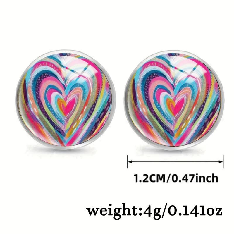 • Rainbow heart iridescent earrings for a fun and colorful look