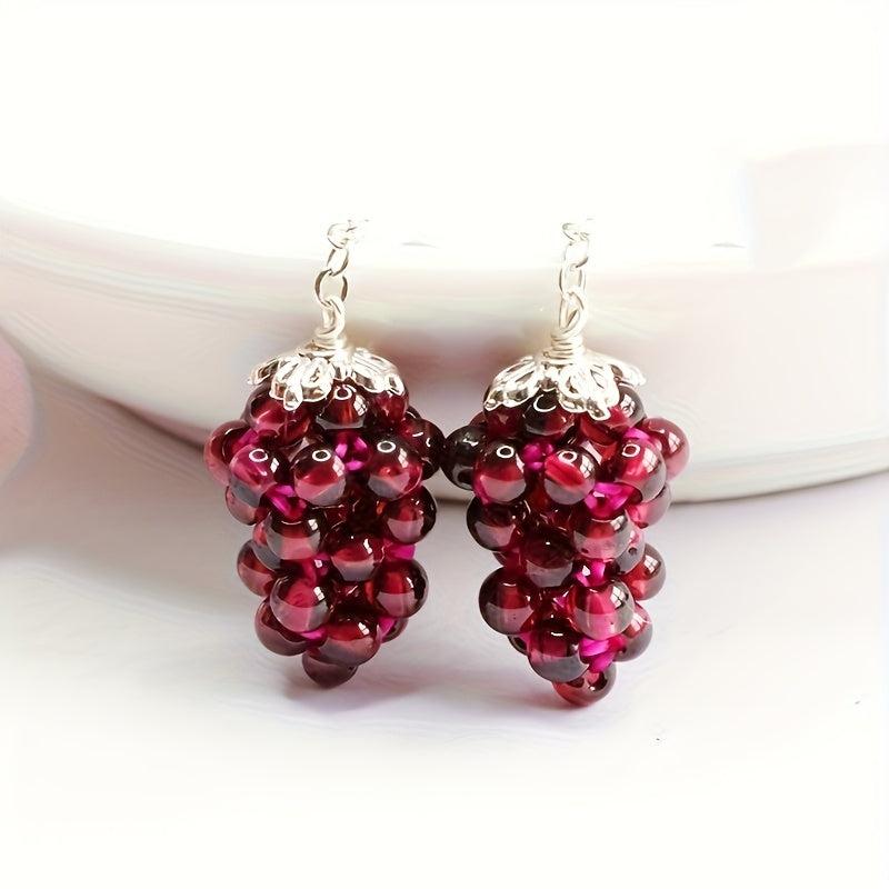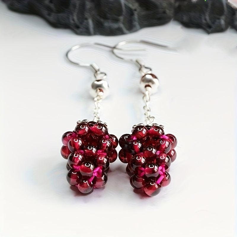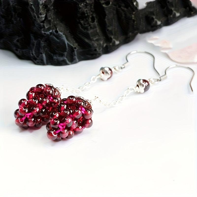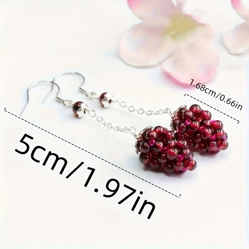 Red Garnet Drop Earrings 925 Sterling Silver Hooks Boho Style