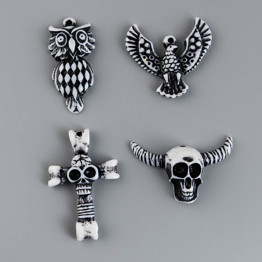 Add a touch of spooky style to your jewelry with these resin beads featuring various gothic designs. Perfect for Halloween-themed accessories.