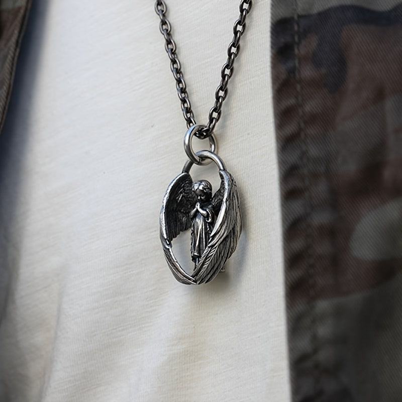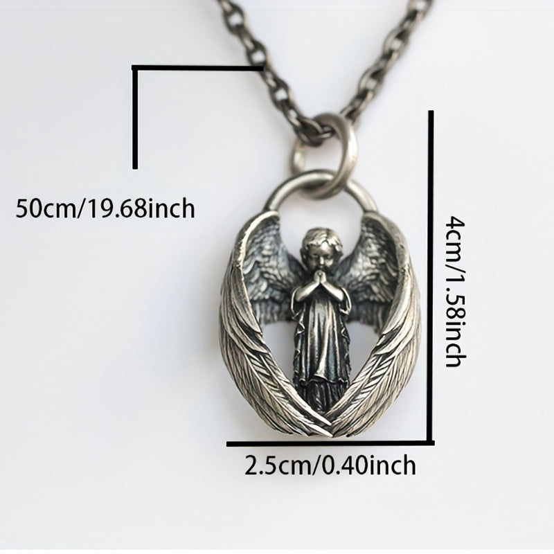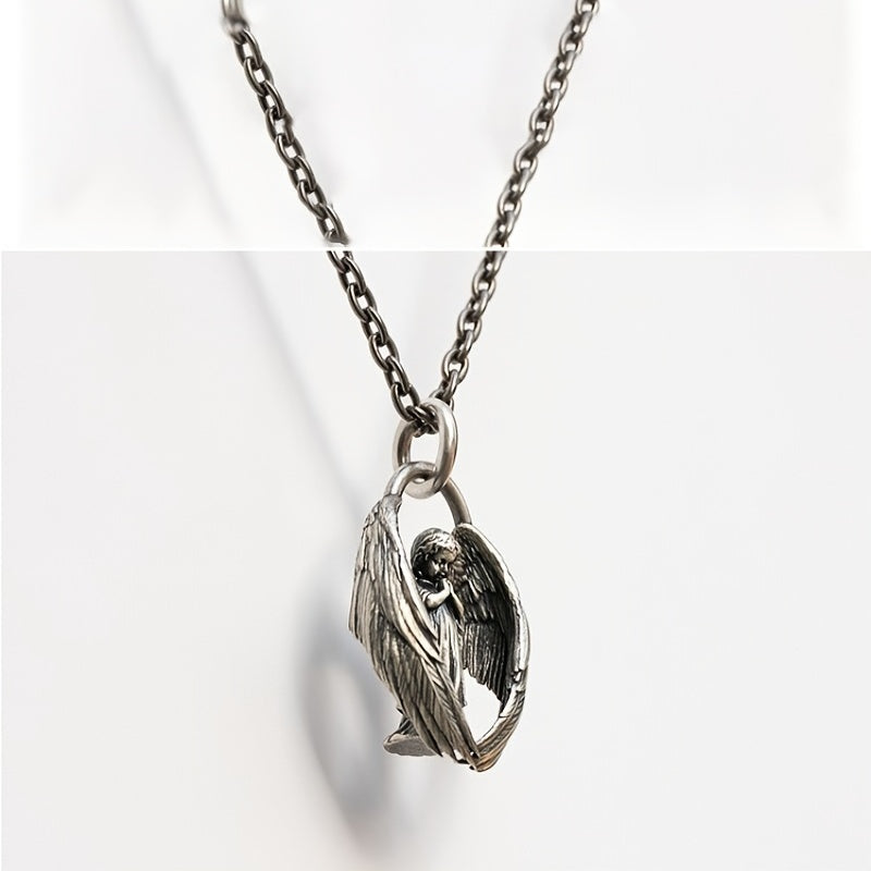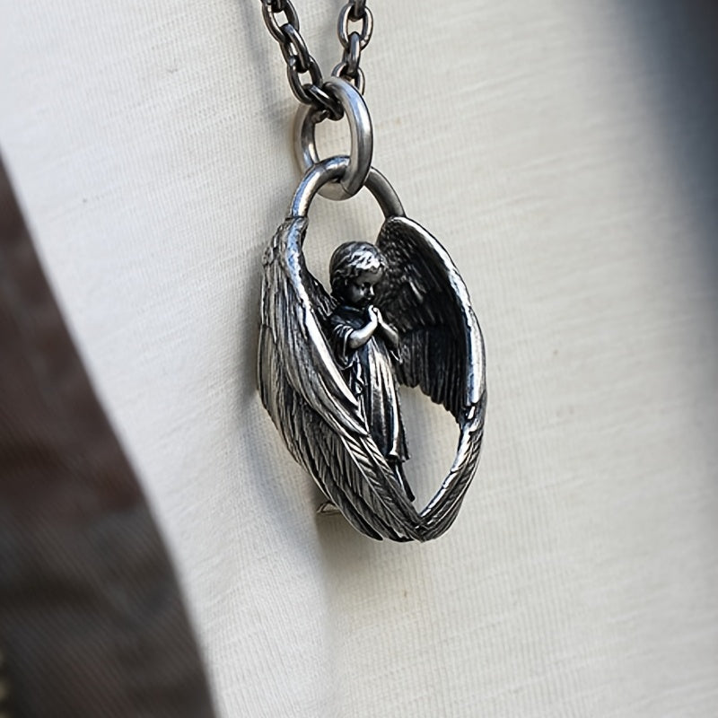 This pendant necklace features retro angel wings design, suitable for both men and women. It carries a blessing of protection and style.