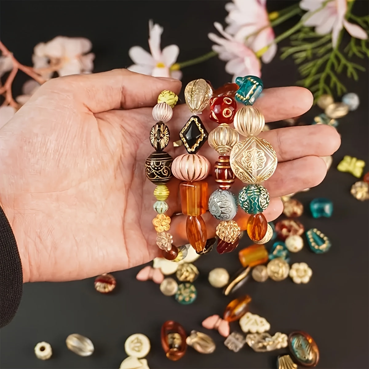 Get creative with these retro-style acrylic beads featuring a baroque golden embossed design. Perfect for making unique jewelry and bracelets. Each bead has pre-drilled holes for easy stringing.