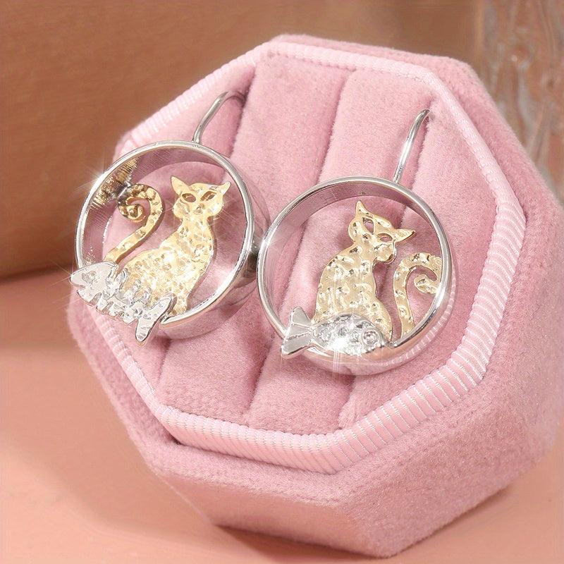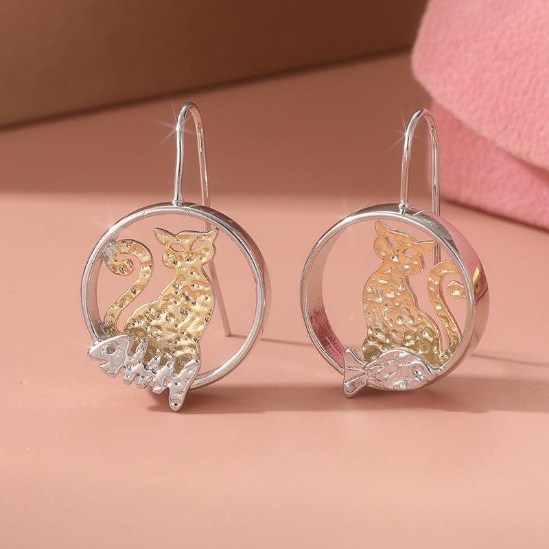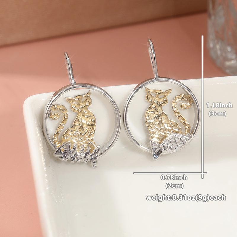 Add a touch of charm to any outfit with these unique cat and fish pendant earrings. Perfect for daily wear or special occasions, these earrings are a great gift for any cat lover.